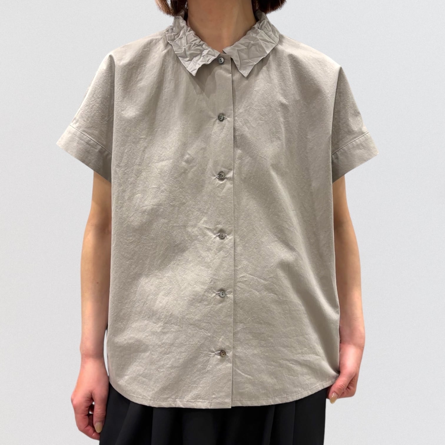 普通のベーシックなレギュラーカラーのきちんと感のあるデザインに比べ、ワッシャーのシワ感が柔らかい雰囲気を演出します。