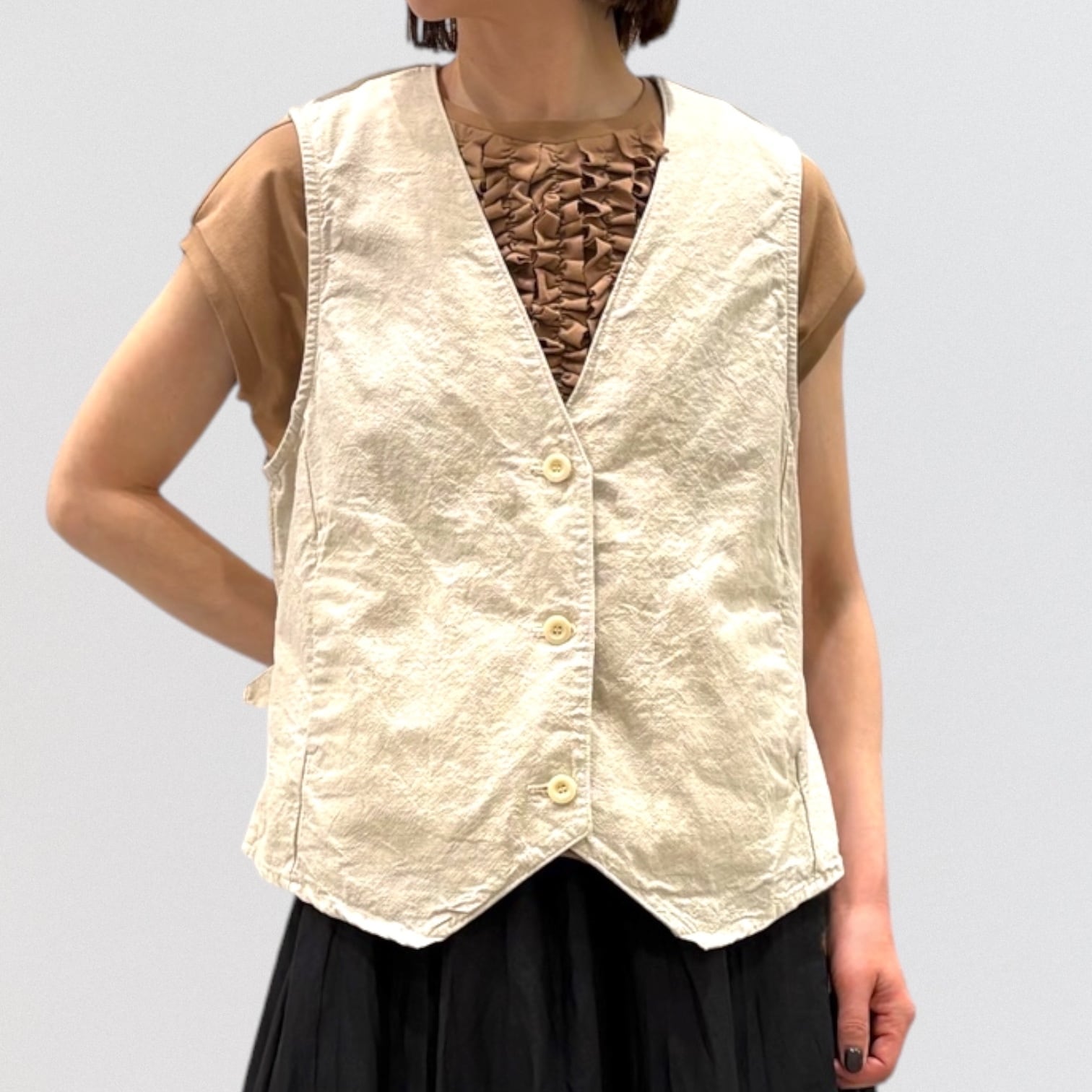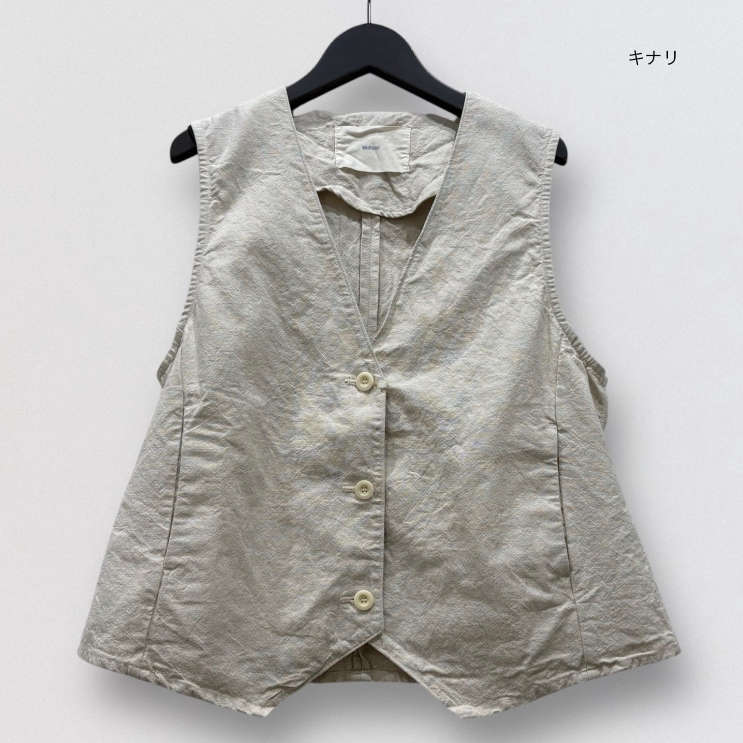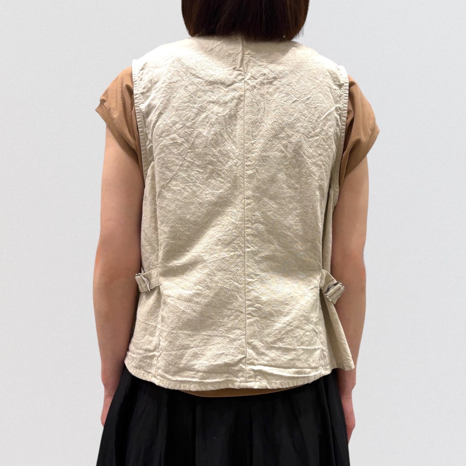 コットンリネンの平織キャンバス地でデザインしたベストです。