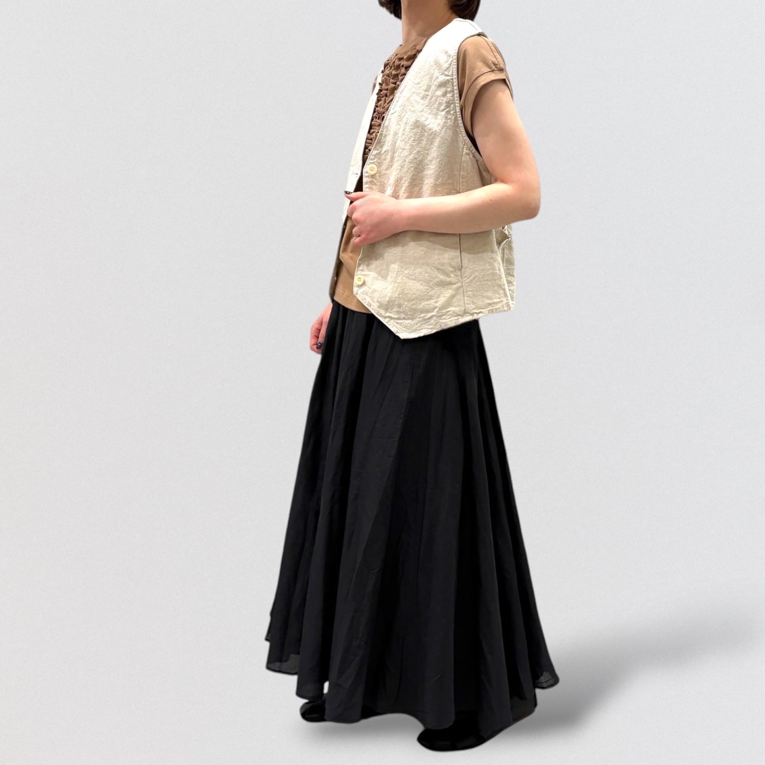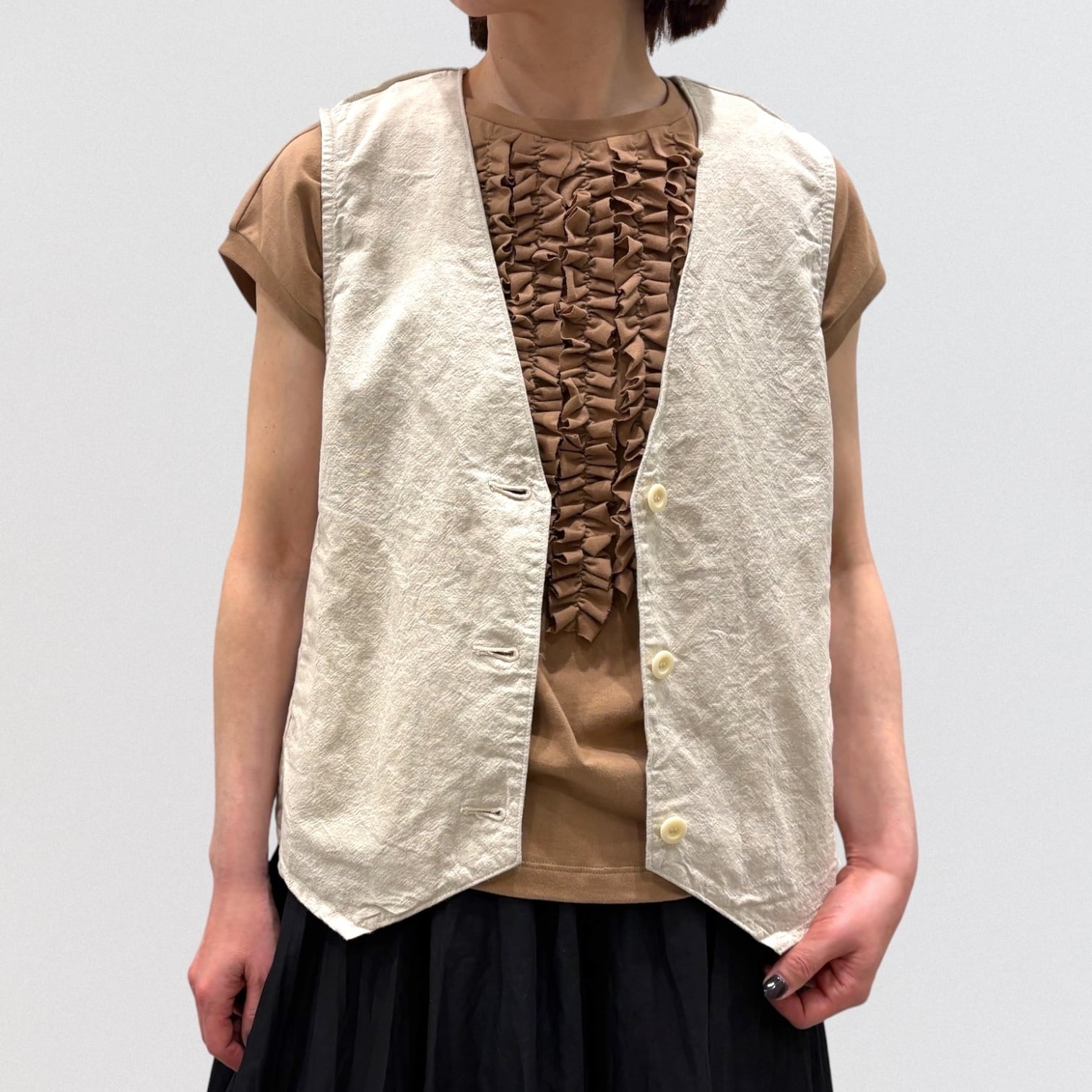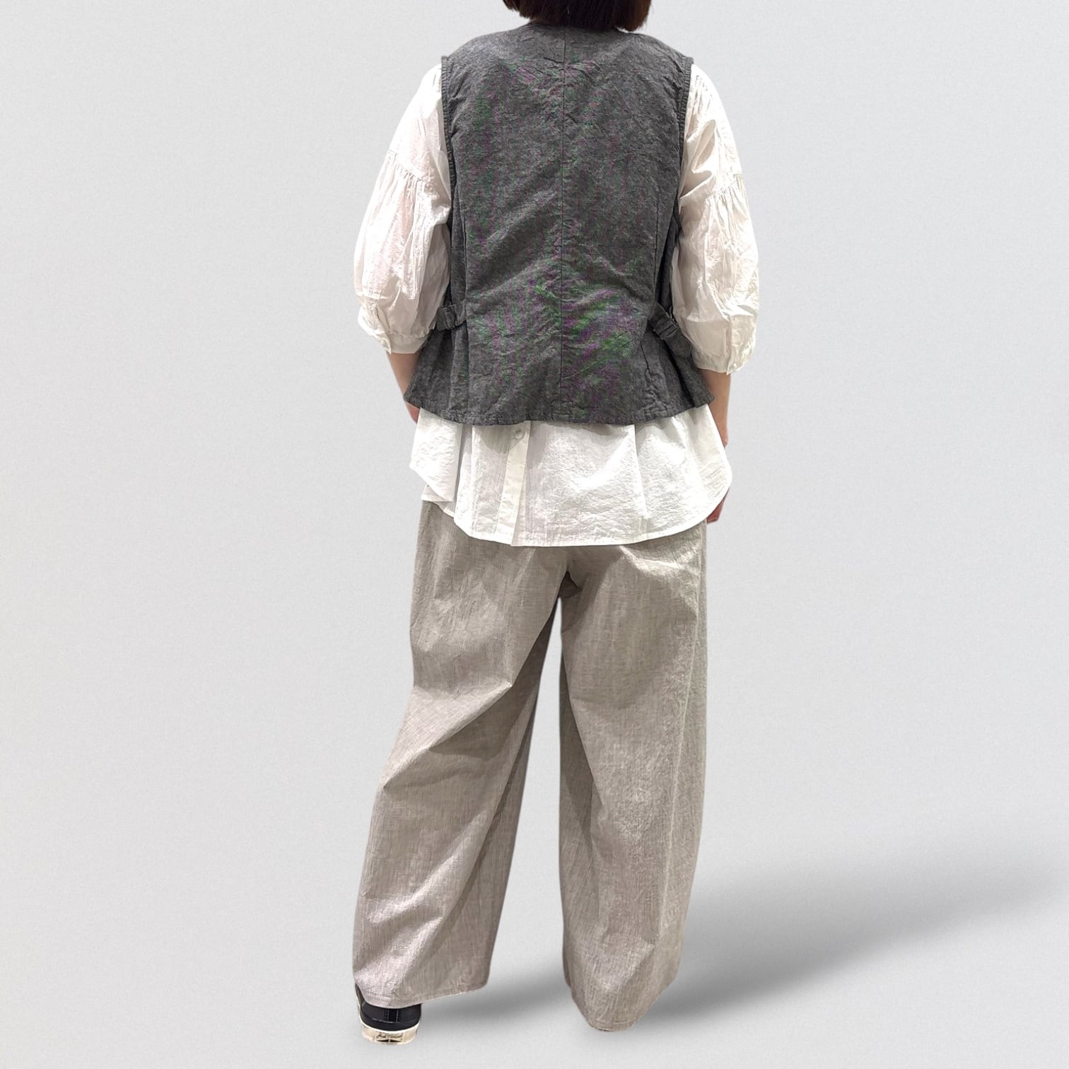 コットンリネンの平織キャンバス地でデザインしたベストです。
