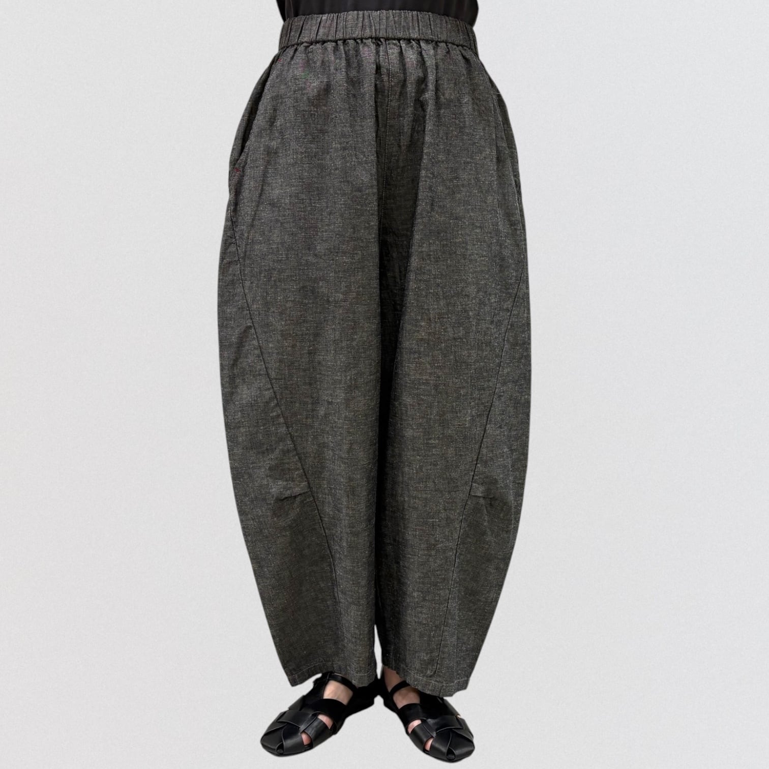 4.7ozの綿麻デニムを使ったバルーンパンツ。