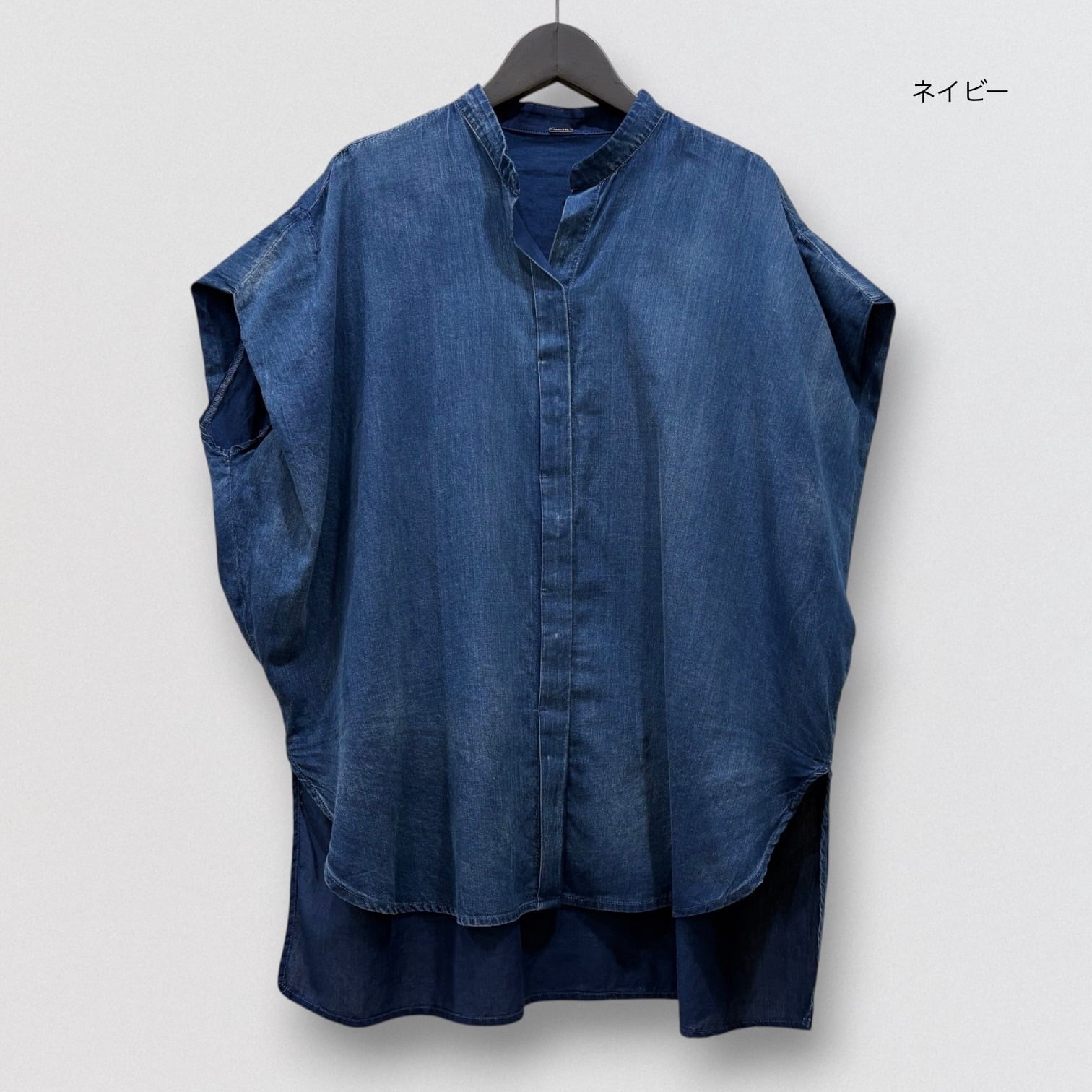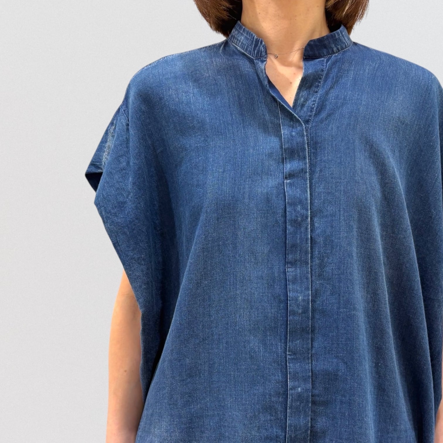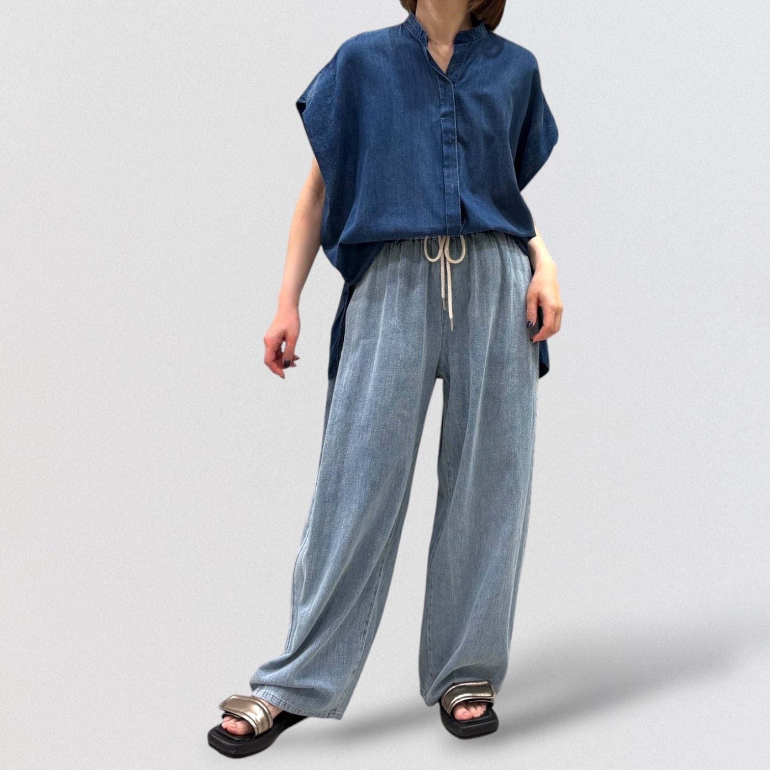 今年人気のシアーデニム素材を使用、デニムの風合いはそのままに、極限まで薄く軽く仕上げることで、まるで空気を纏っているかのような通気性。