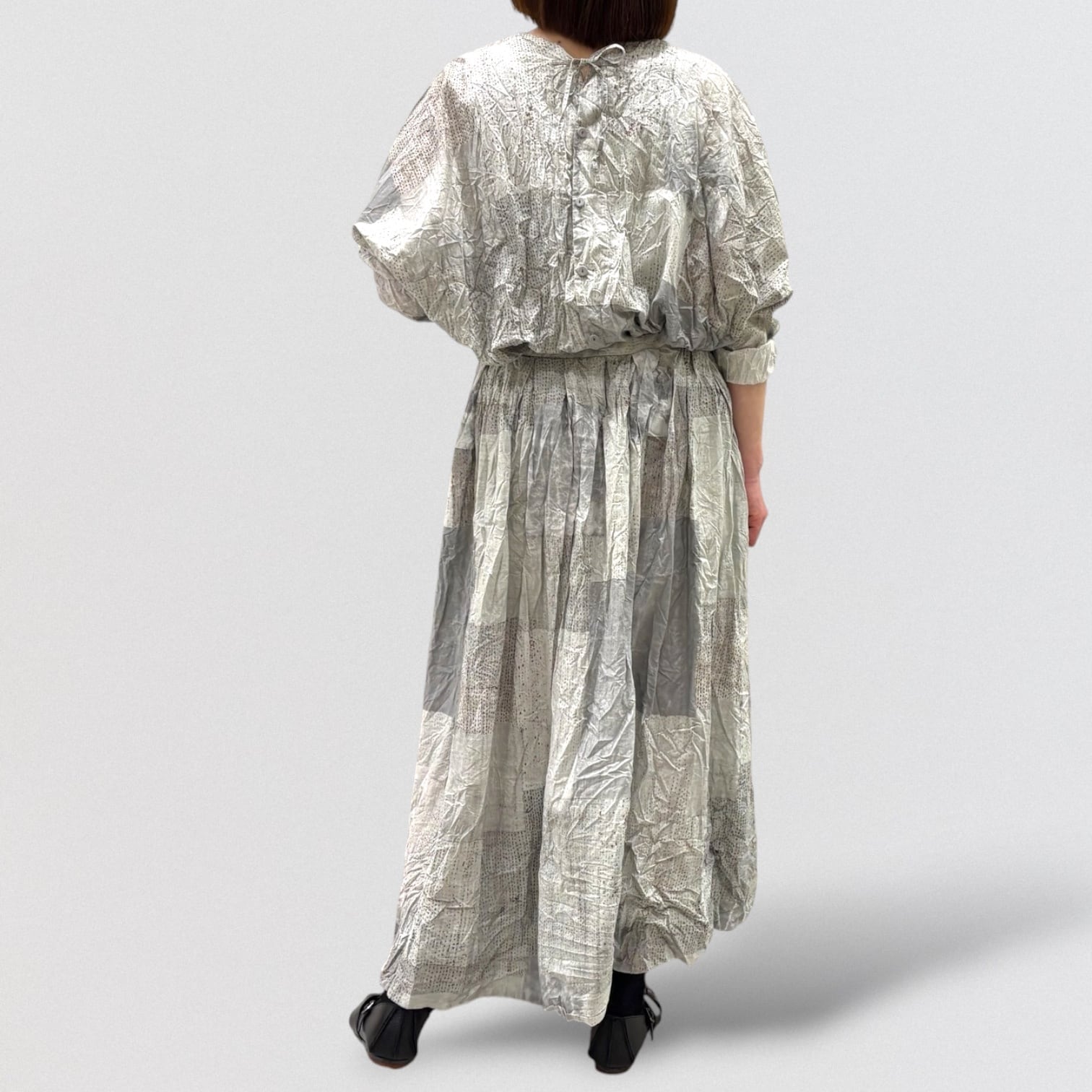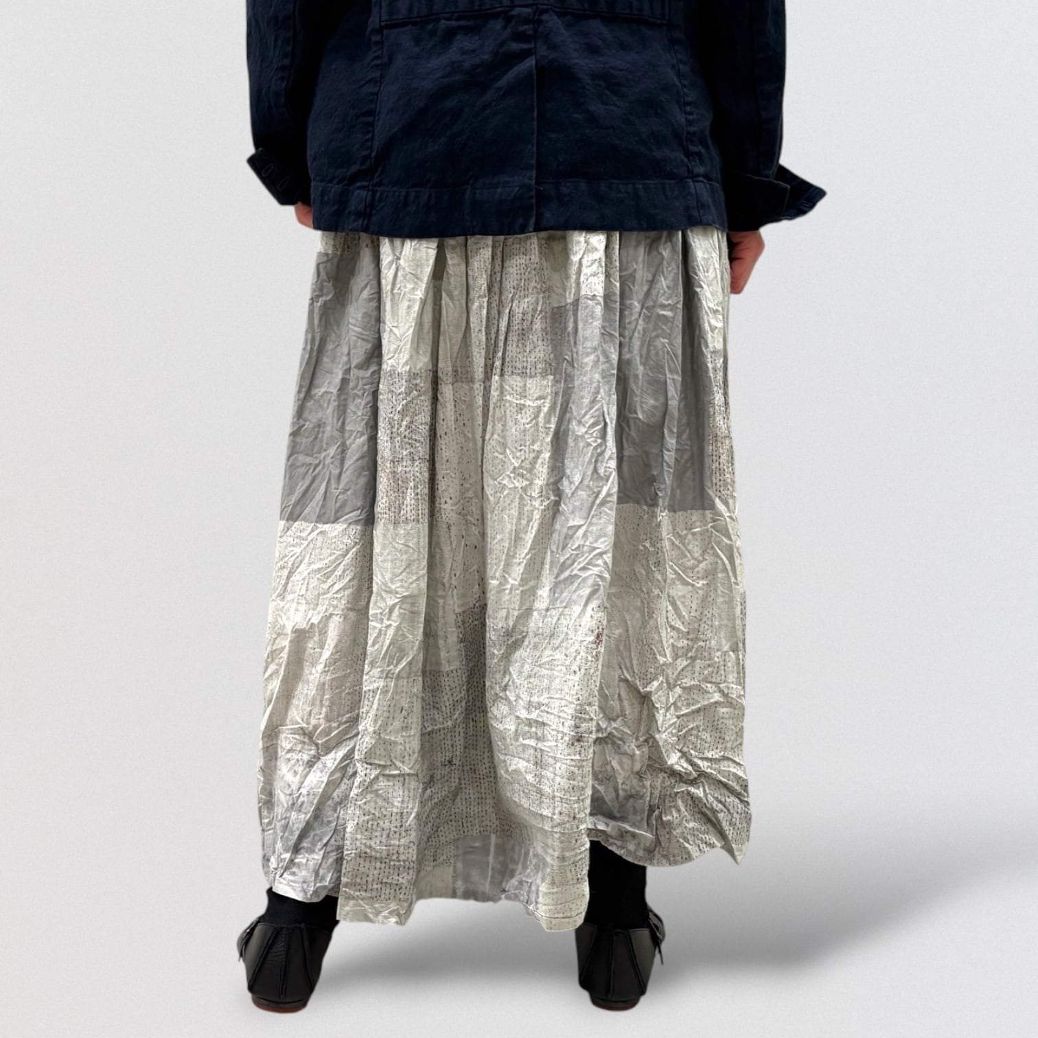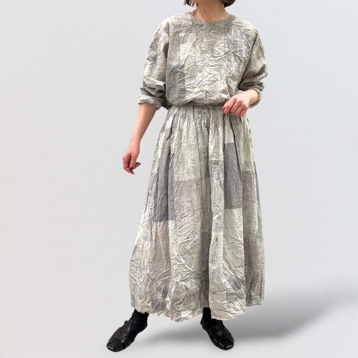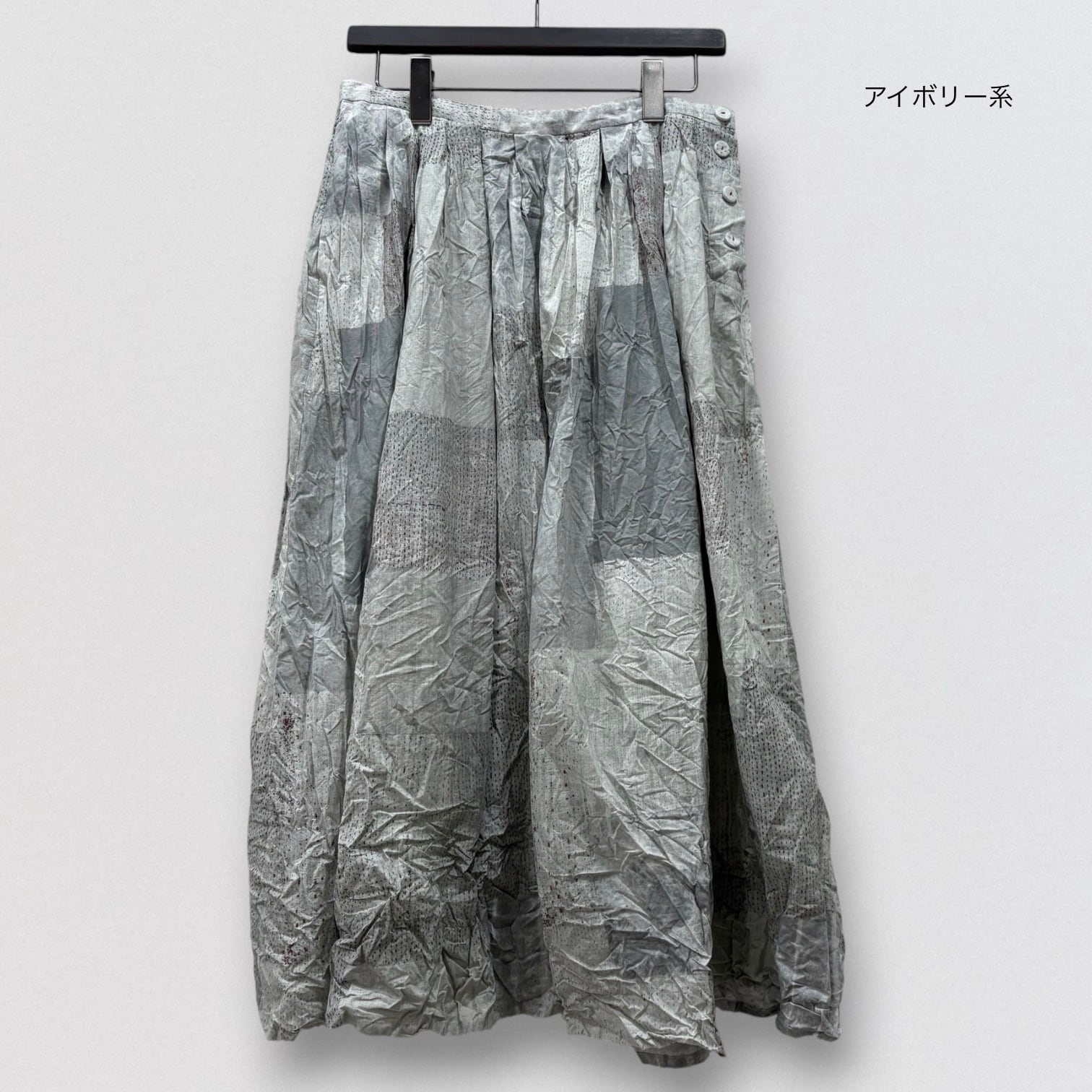 Tsugihagiプリントをのせた、タックドスカート。