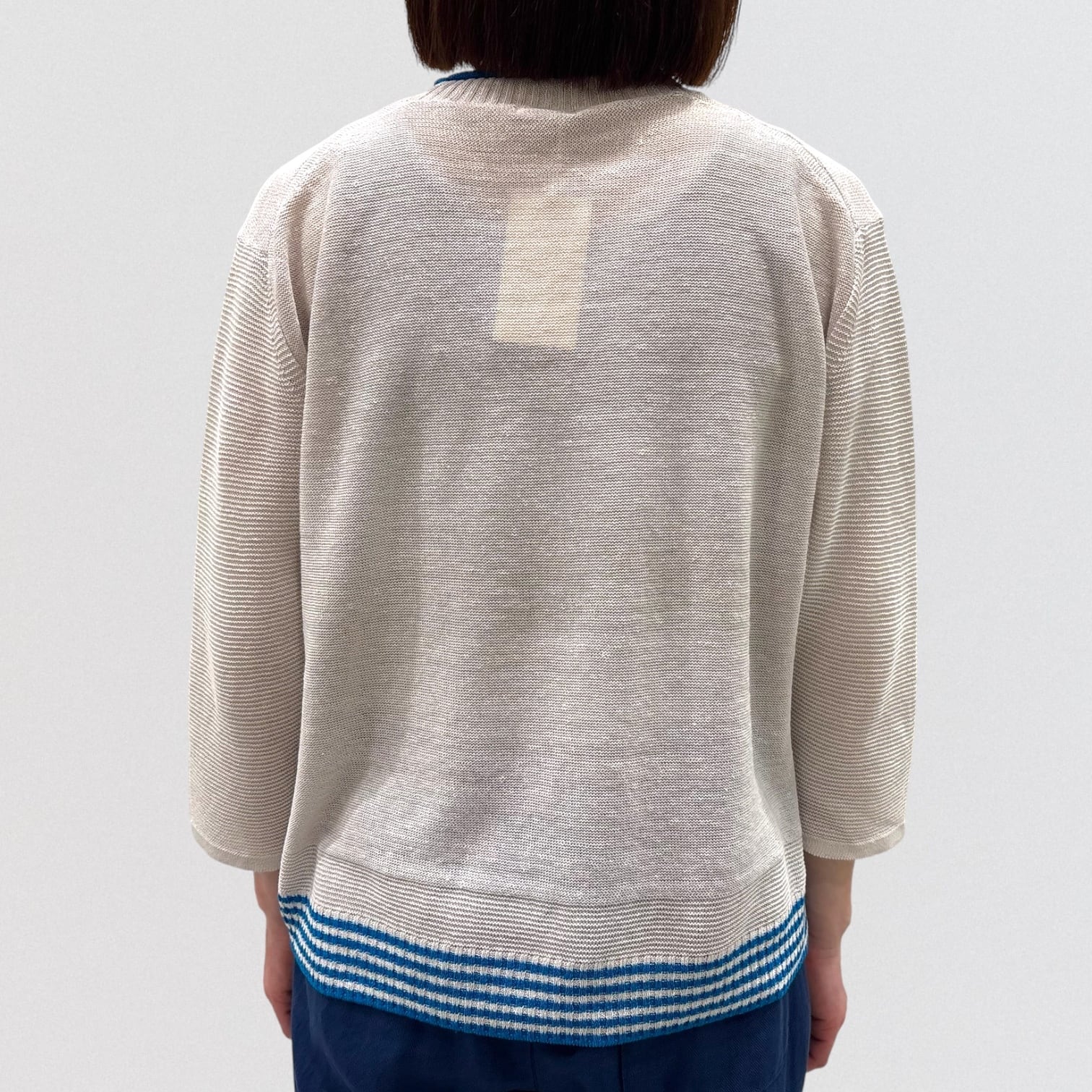 春~夏まで羽織りやすい清涼感のあるナチュラルな雰囲気の綿麻ニット。