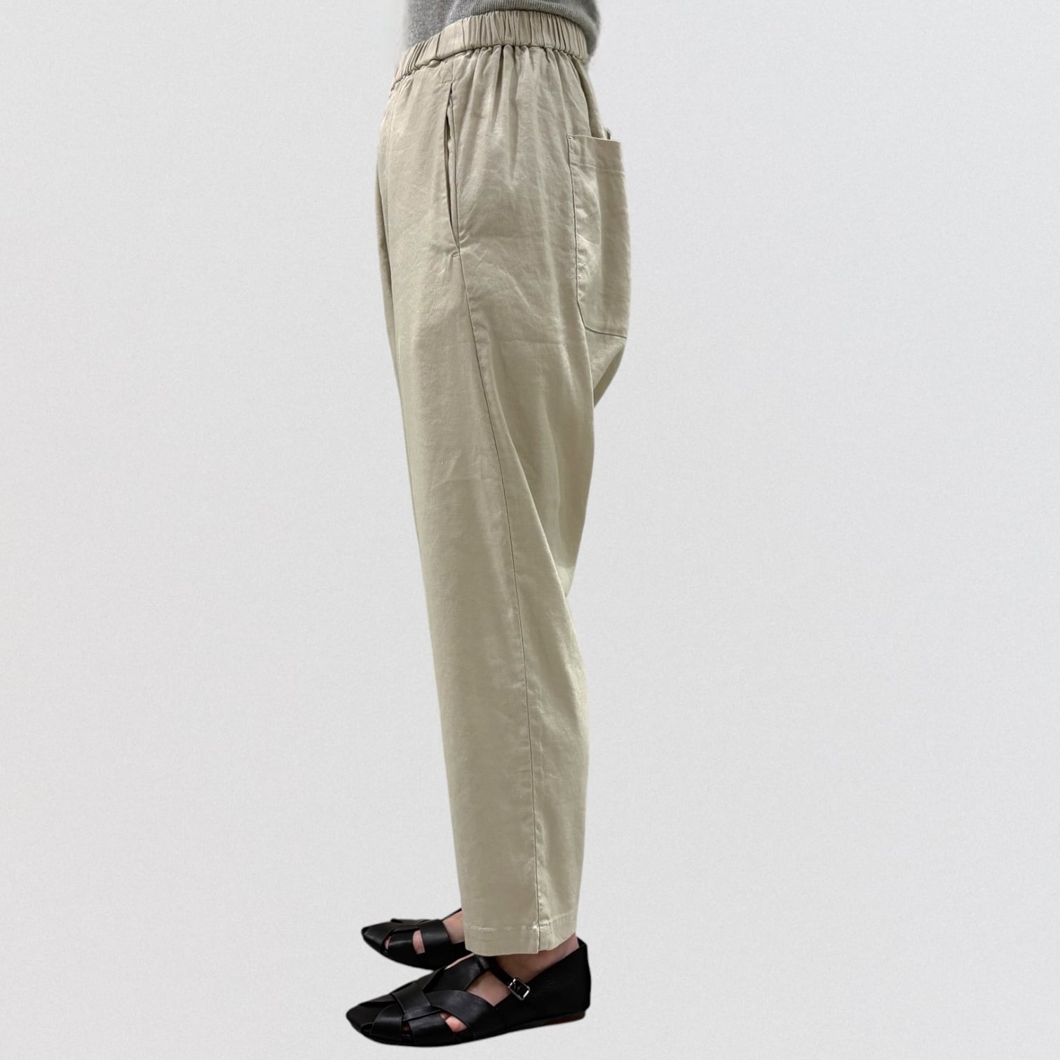フレンチリネンとストレッチレーヨンを掛け合わせたキャンバス素材。