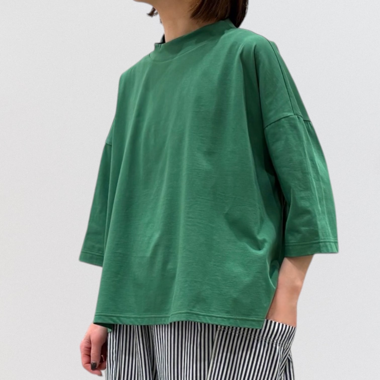 肌触りの良いハイゲージ天竺のボートネックプルオーバー。