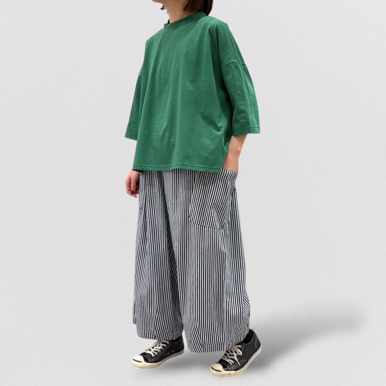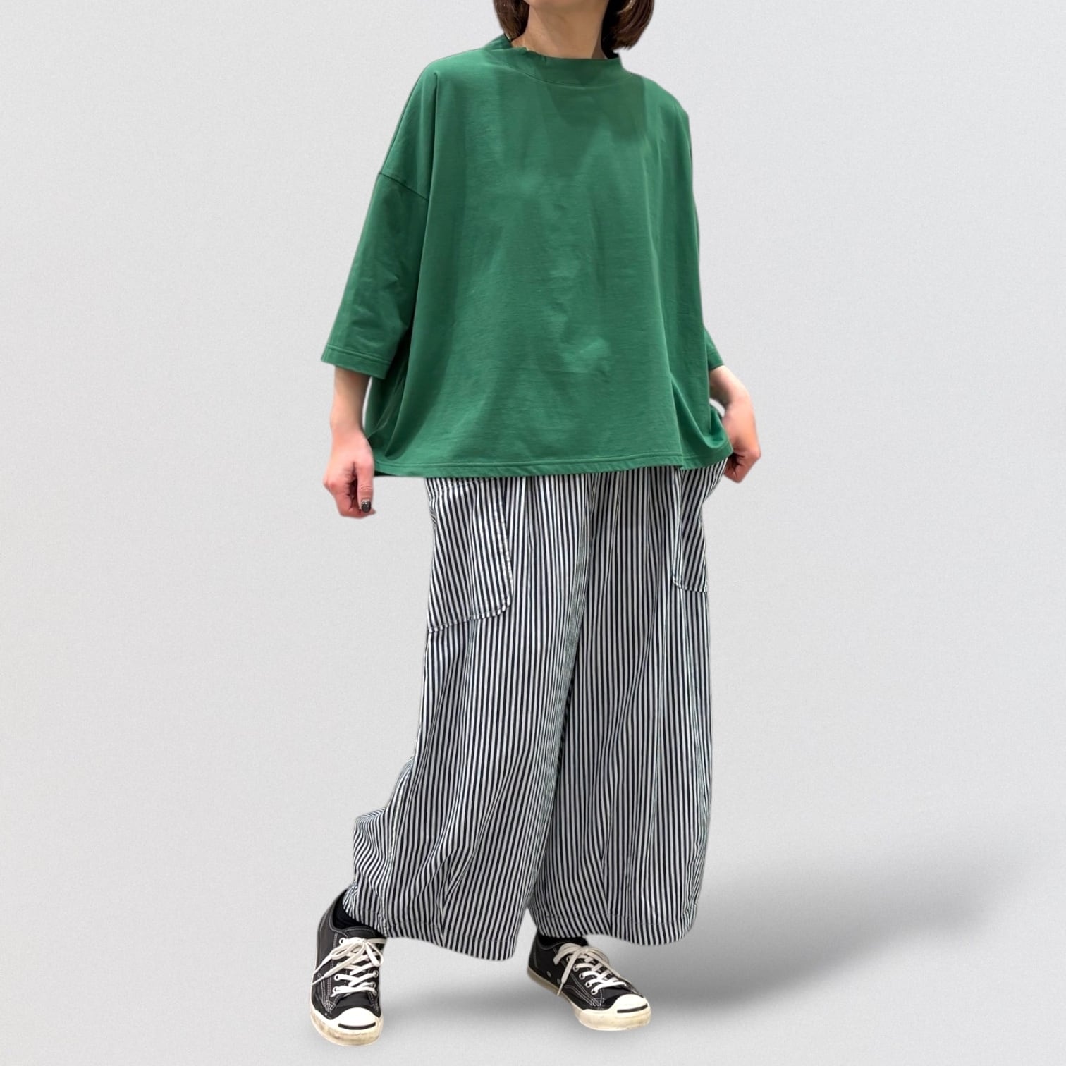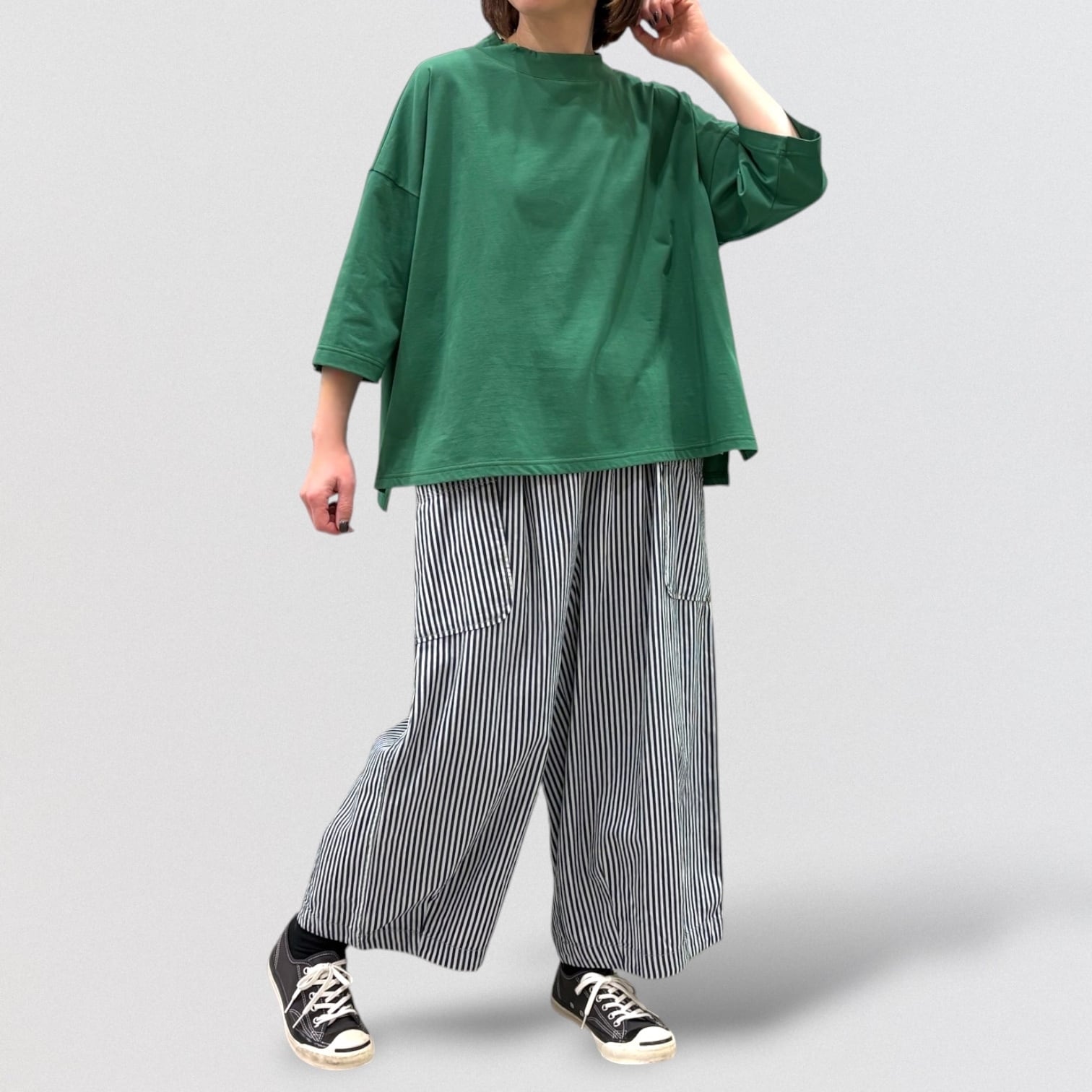 開きすぎない緩やかなボートネックで首元はスッキリ効果。