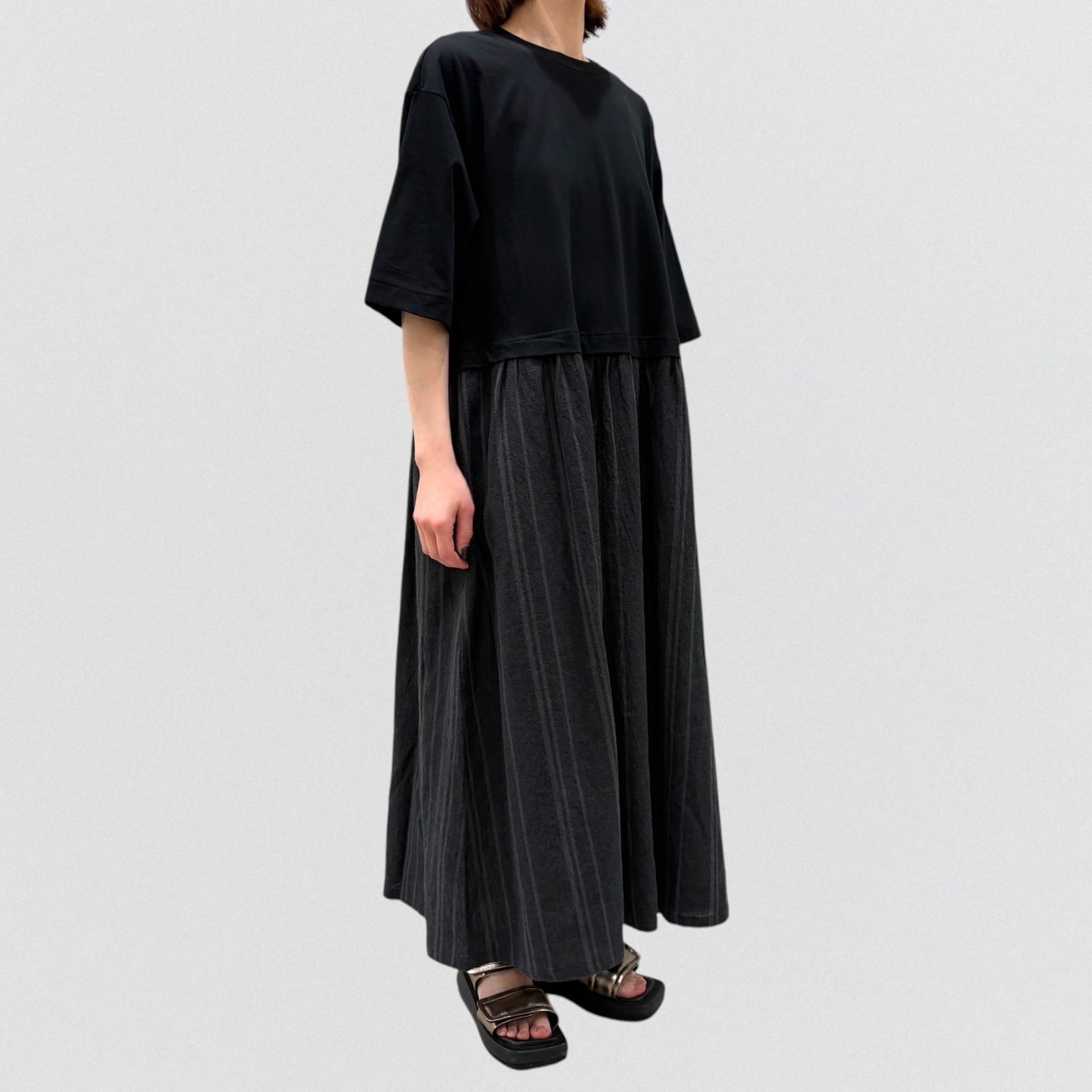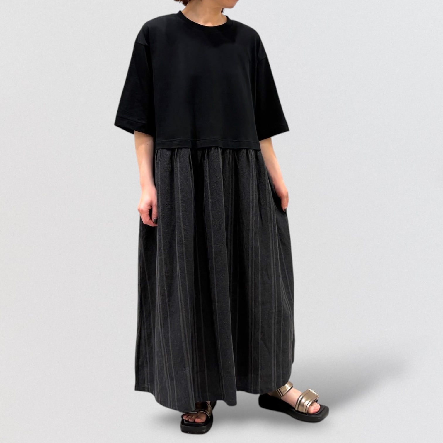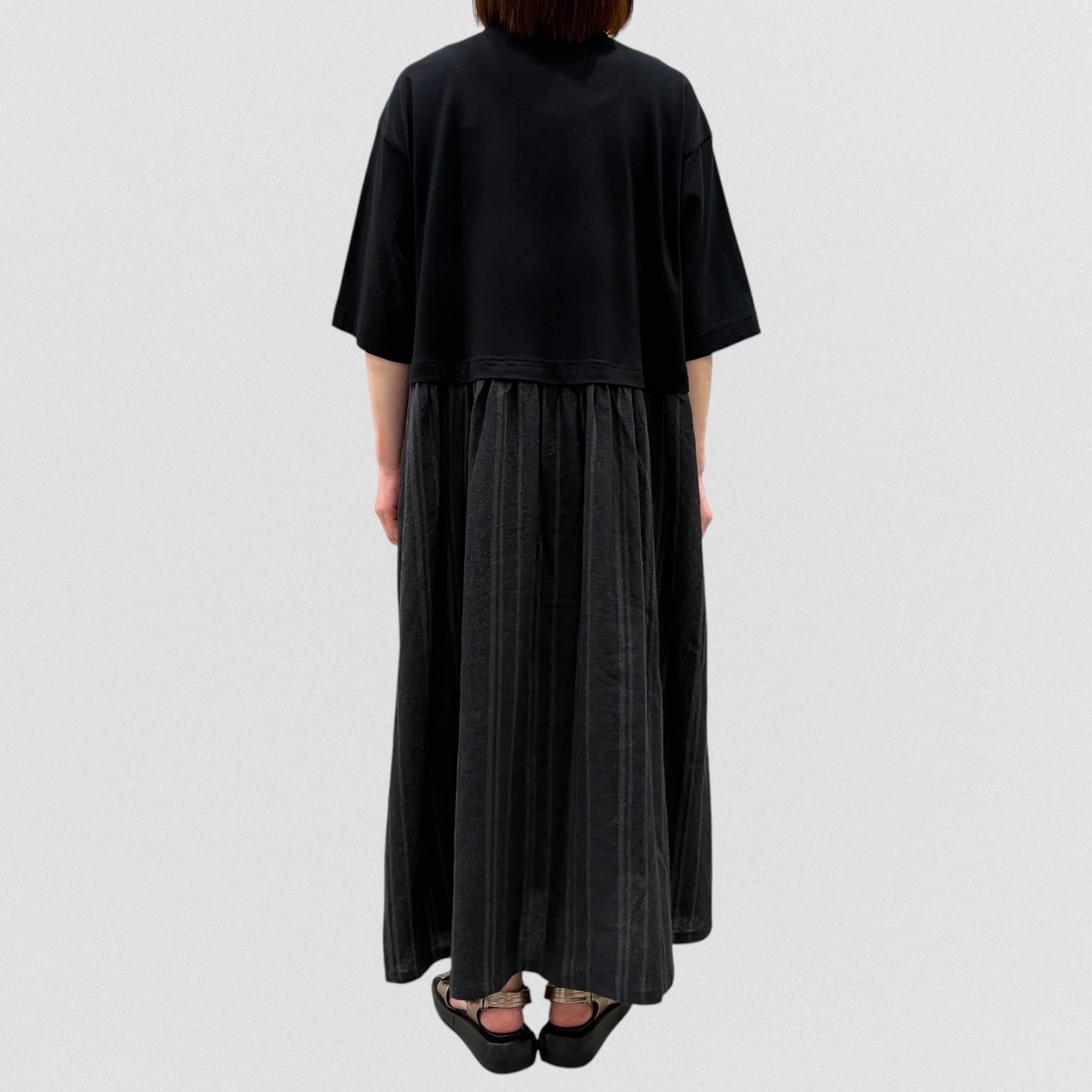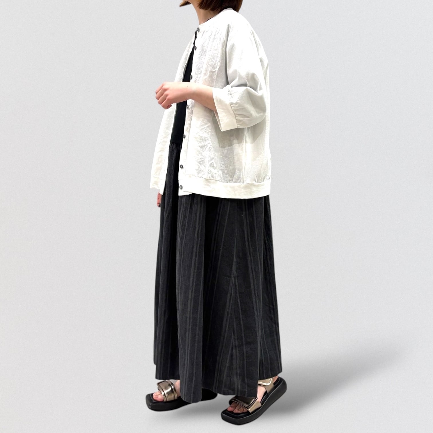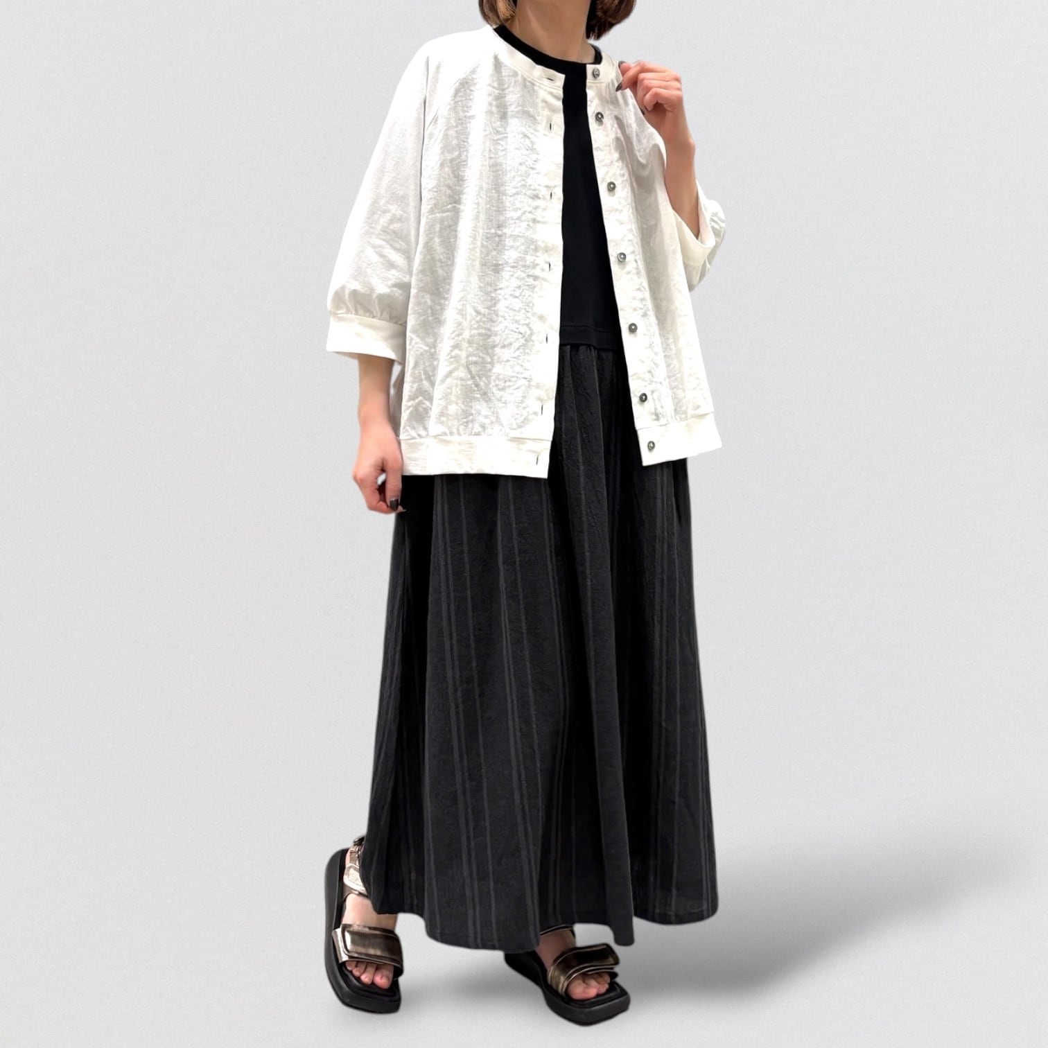 スカート部分に布帛強撚のグラデーション風ストライプで軽やかに。