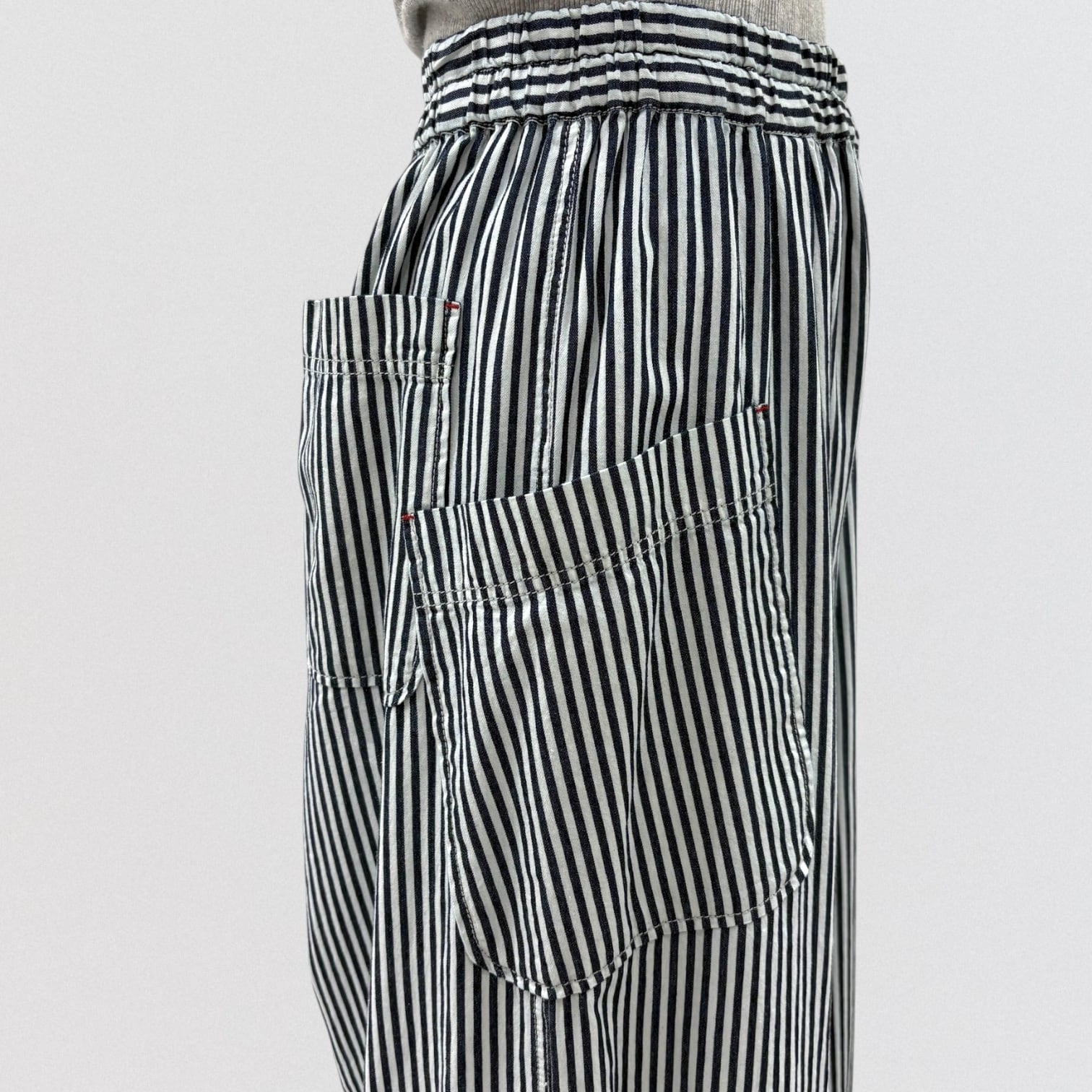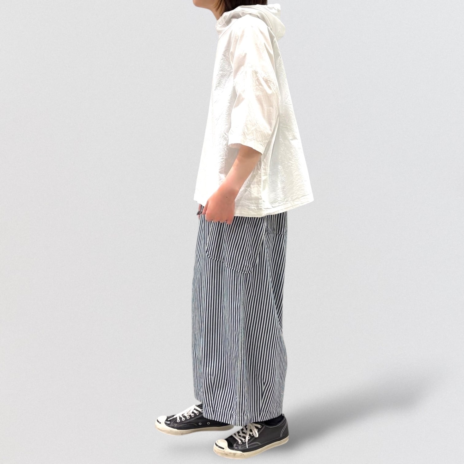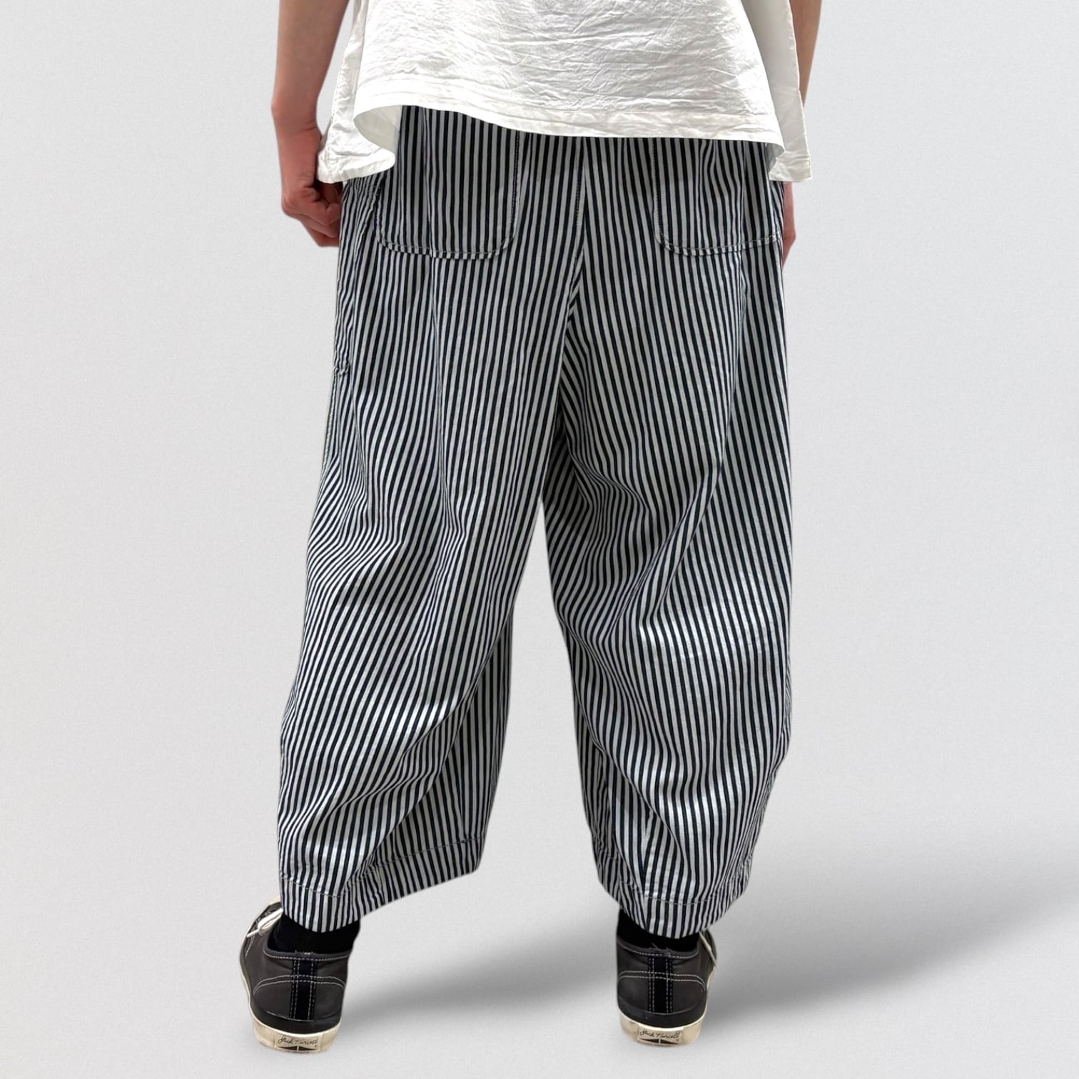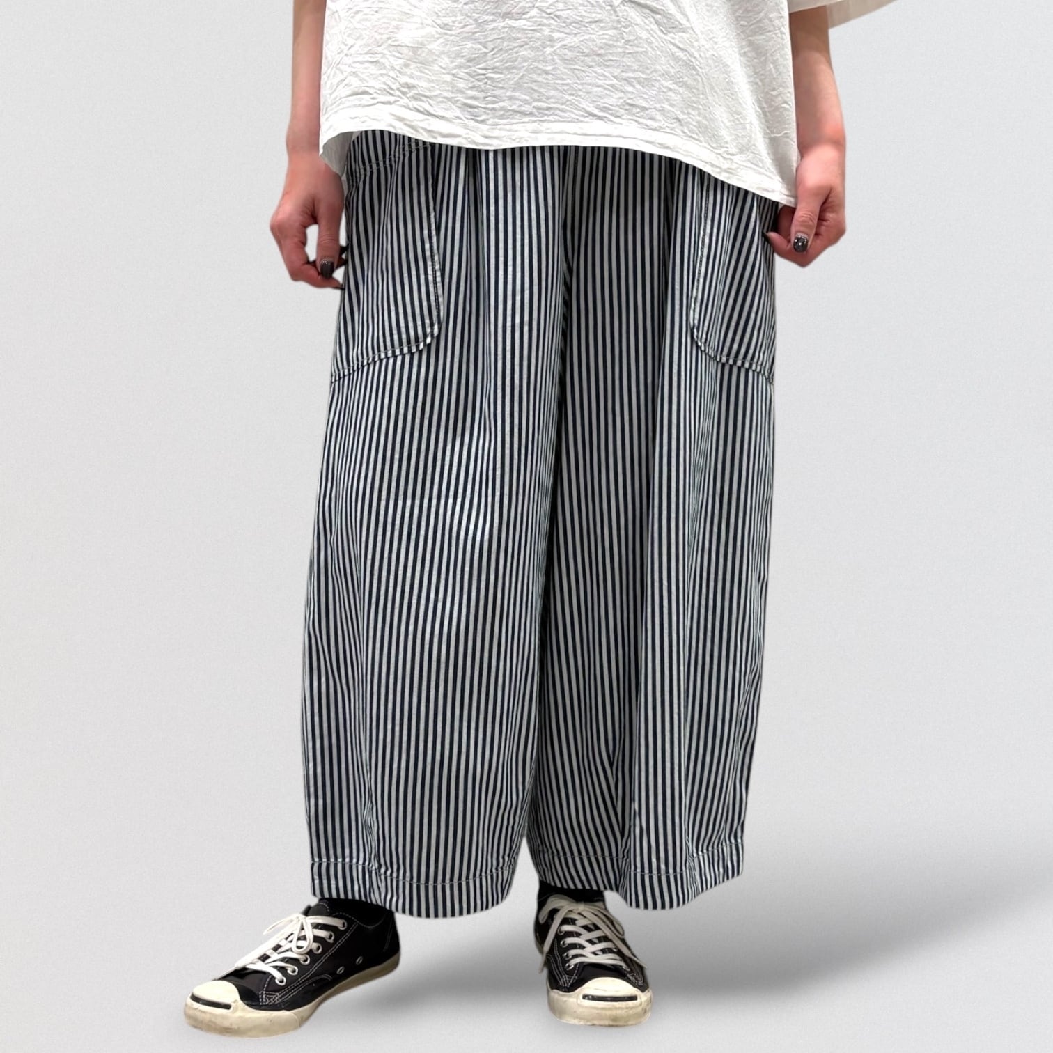 軽くて薄いヒッコリー素材を使用したバルーンパンツ。
