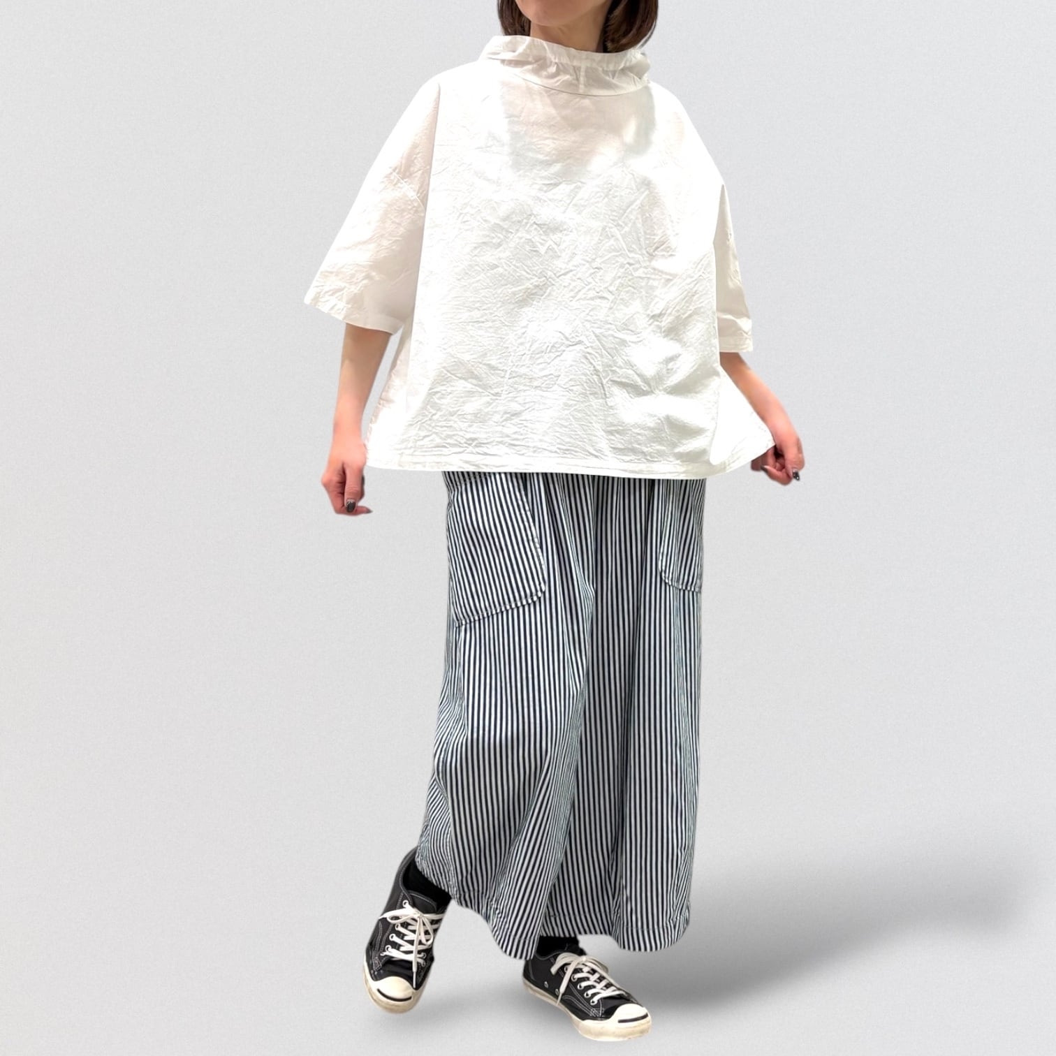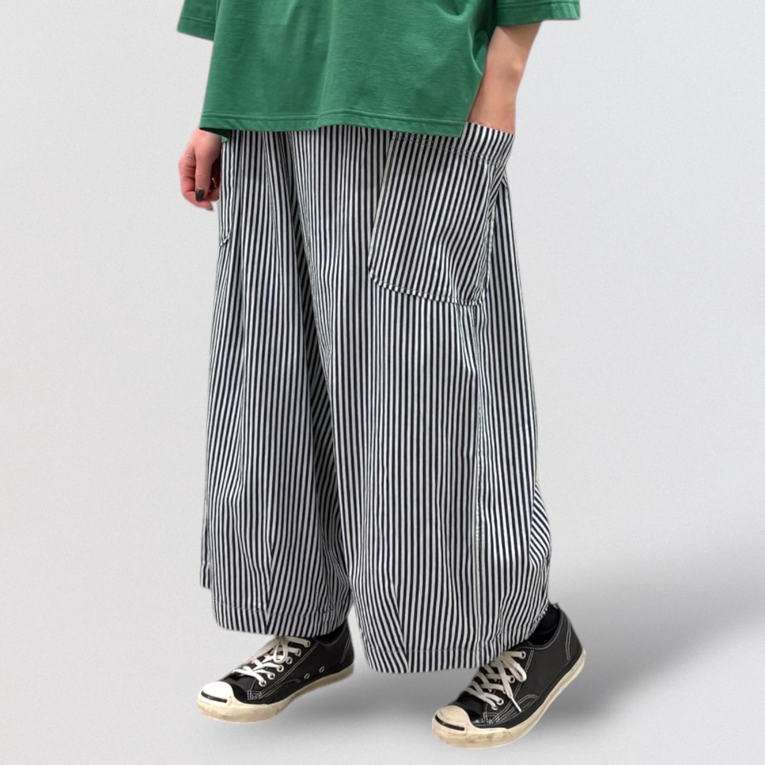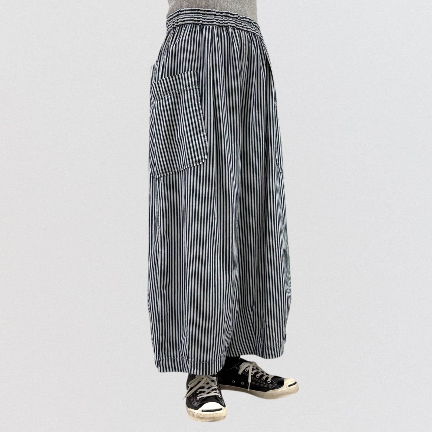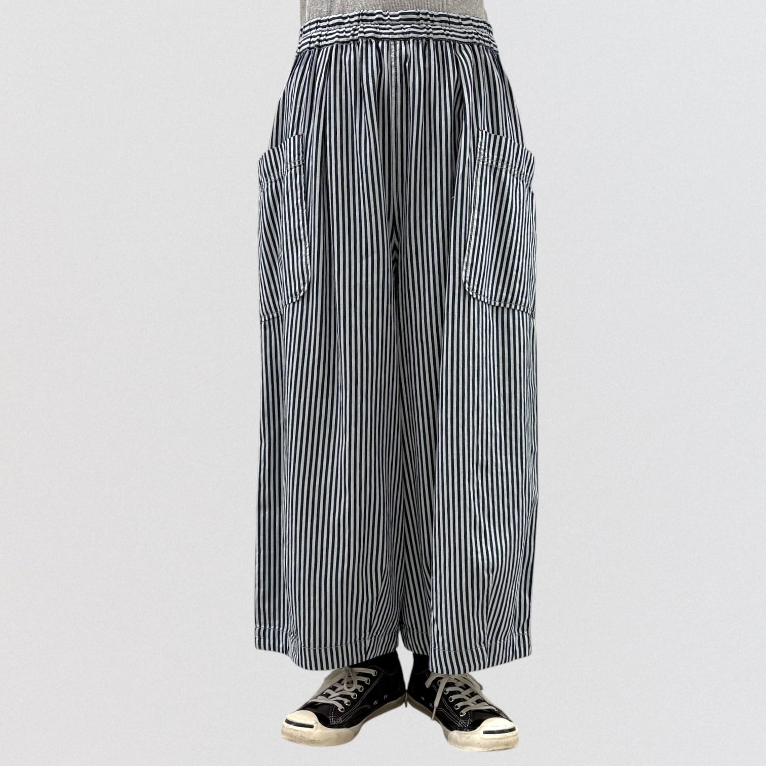軽くて薄いヒッコリー素材を使用したバルーンパンツ。