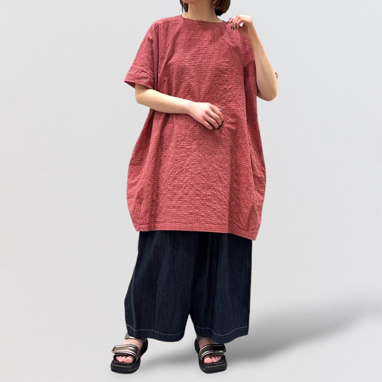ゆったりしたワイドシルエットで夏場も快適に過ごせます。