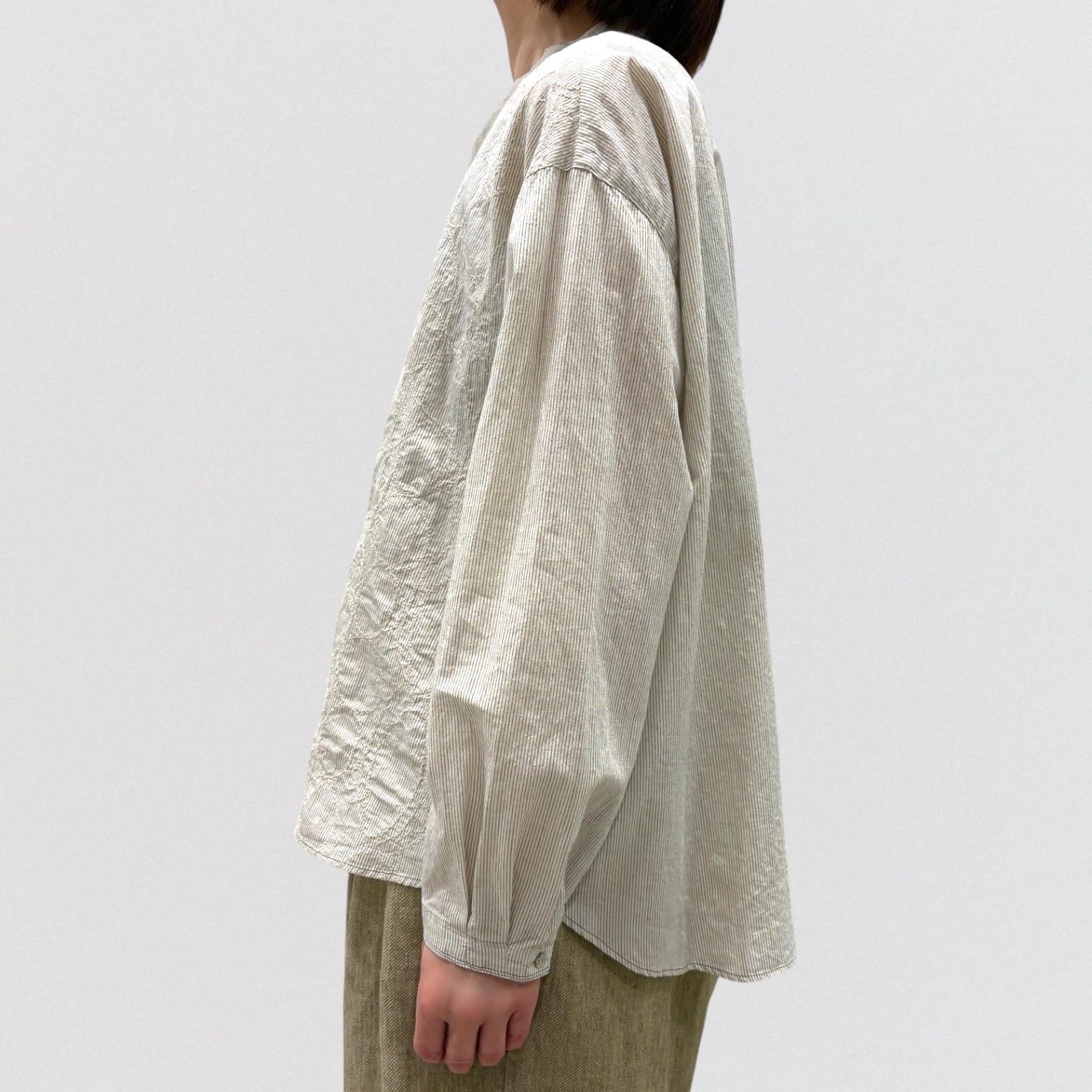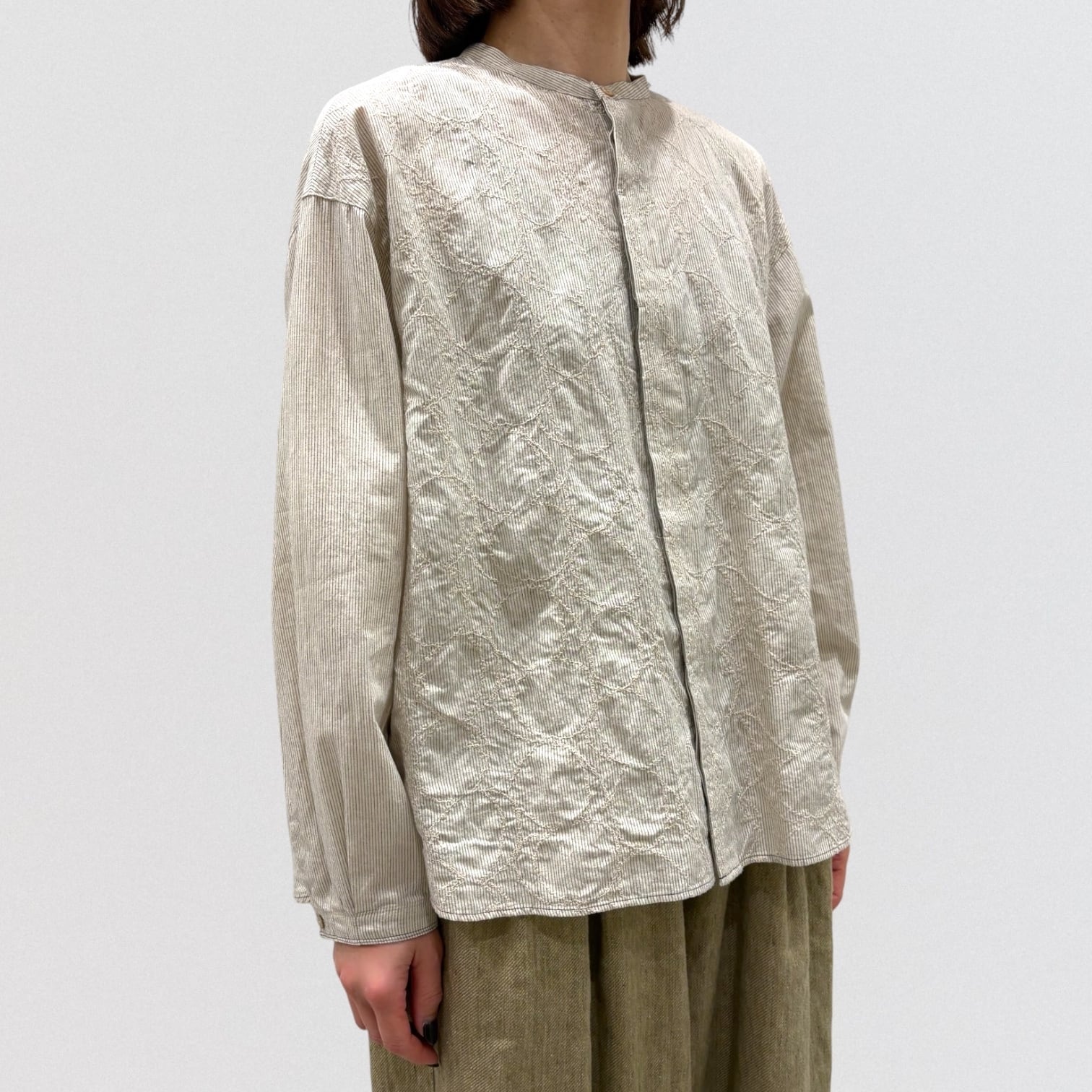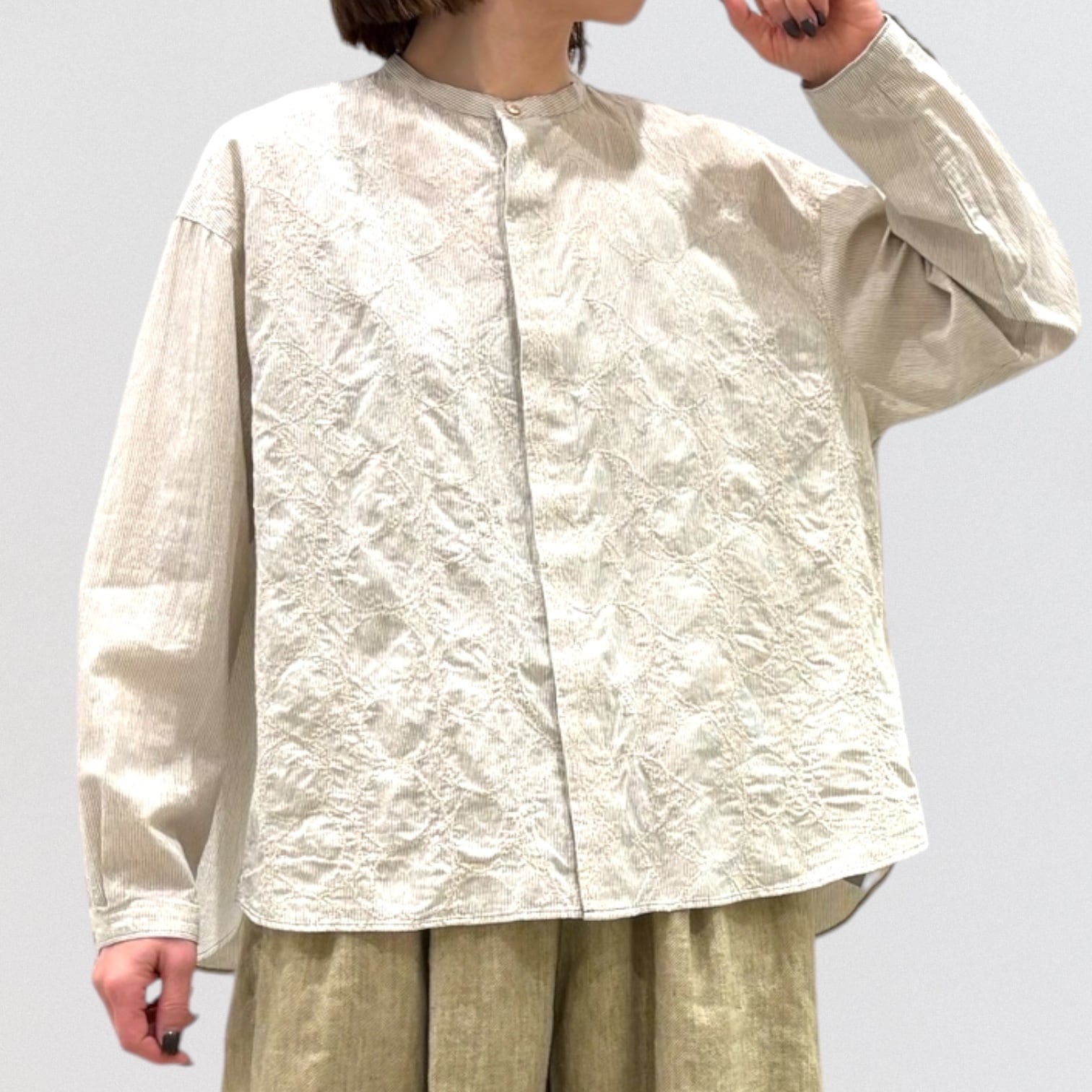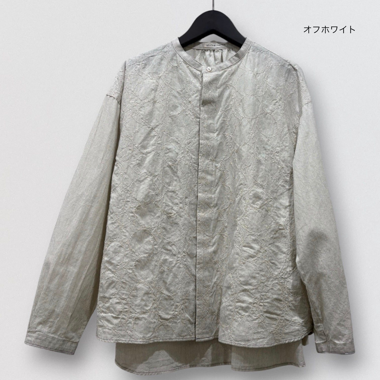 ストライプ先染め生地にnumeオリジナル刺繍を施してます。