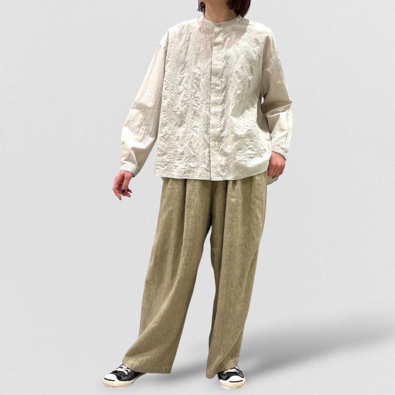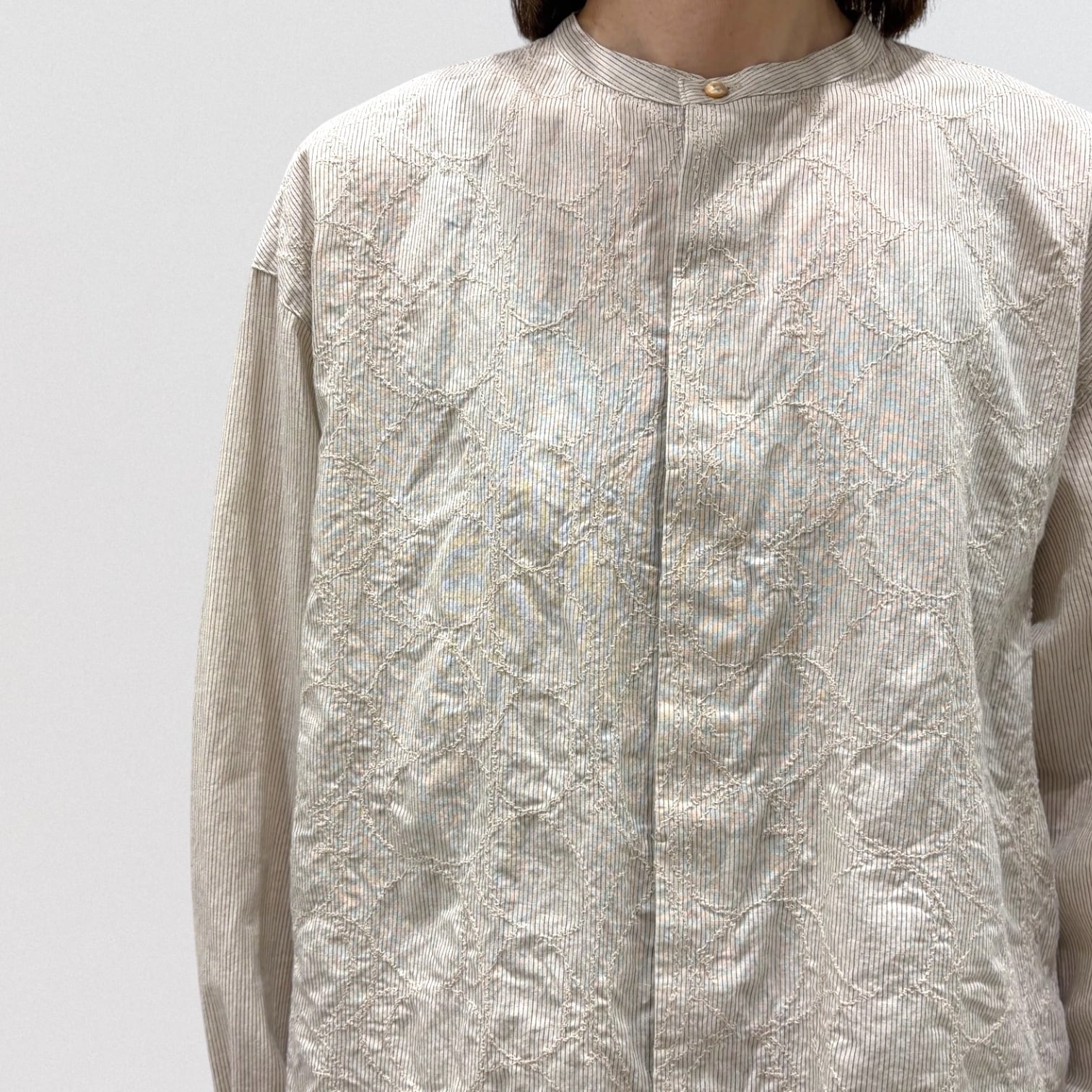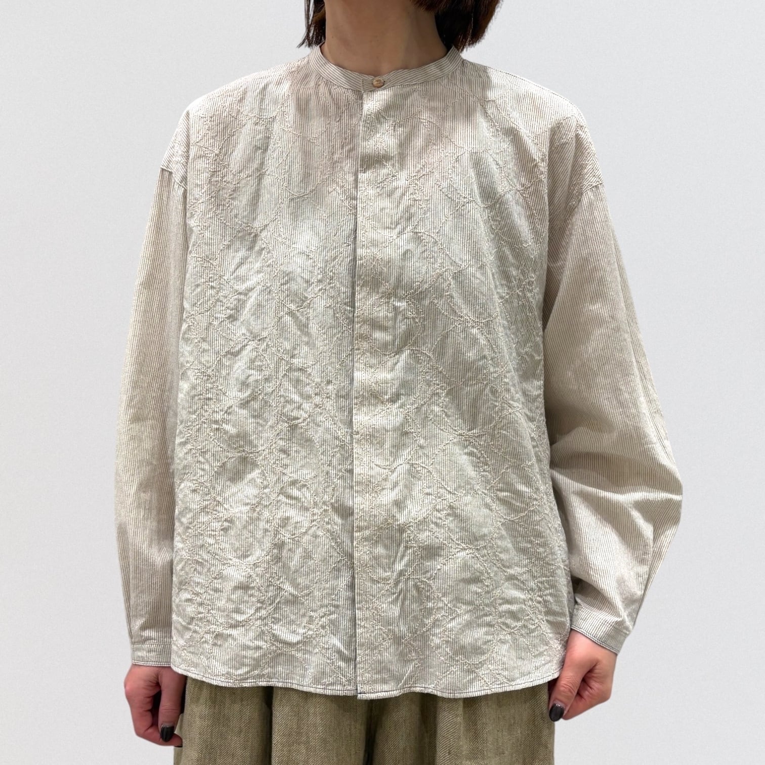 ストライプ先染め生地にnumeオリジナル刺繍を施してます。