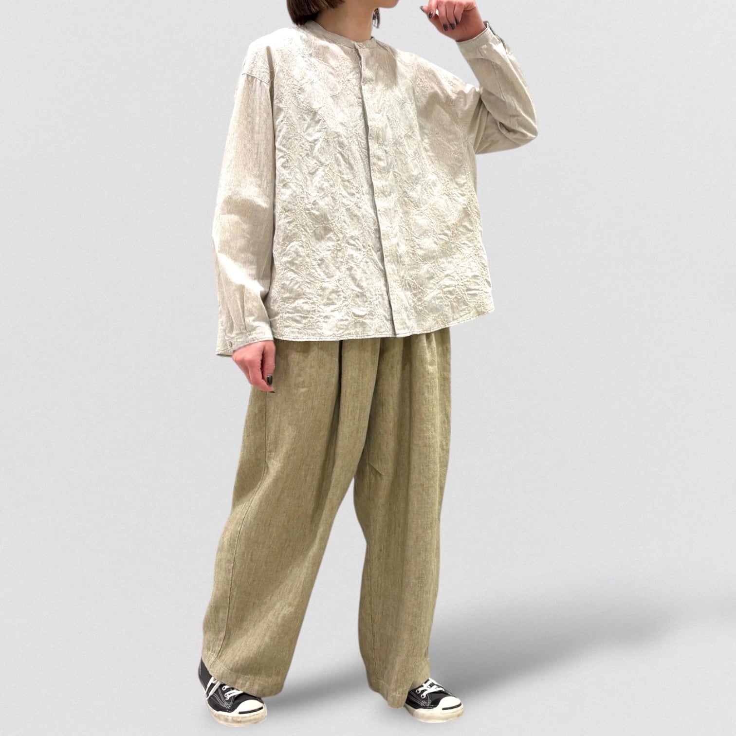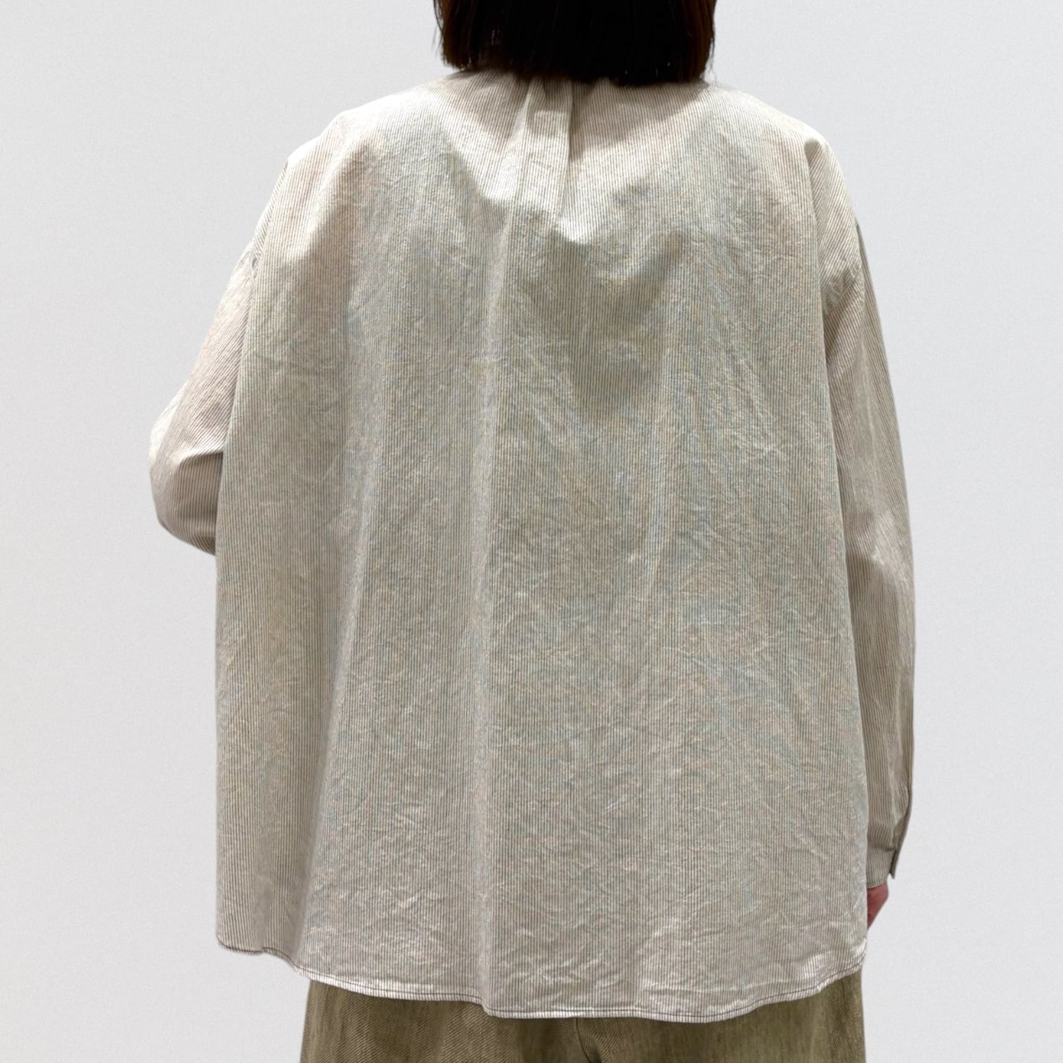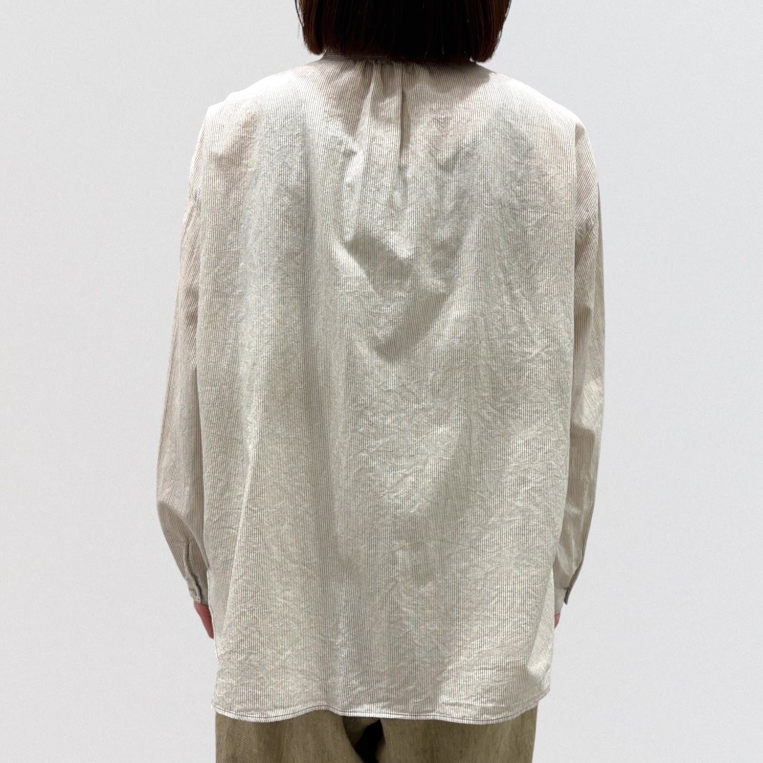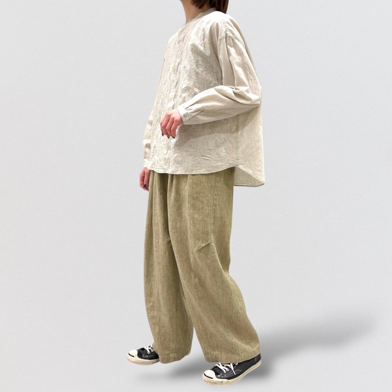 ストライプ先染め生地にnumeオリジナル刺繍を施してます。