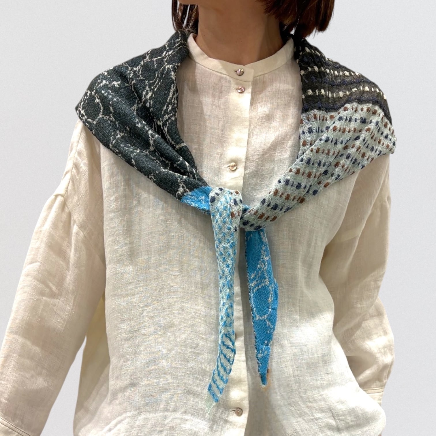 リネンのシャリ感とブークレー糸のジャカードストールです。