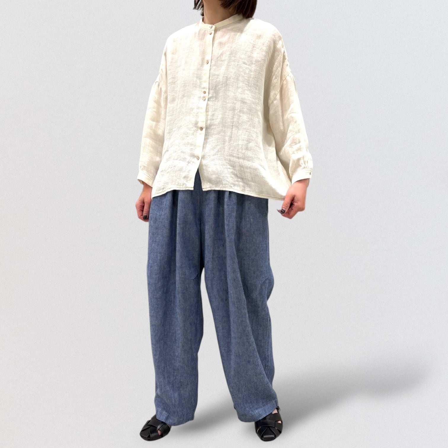 ざっくりとした雰囲気のリネンWガーゼを使用。