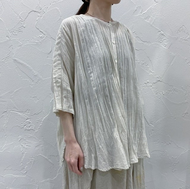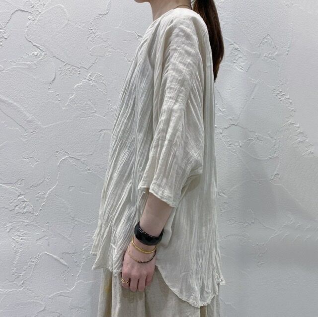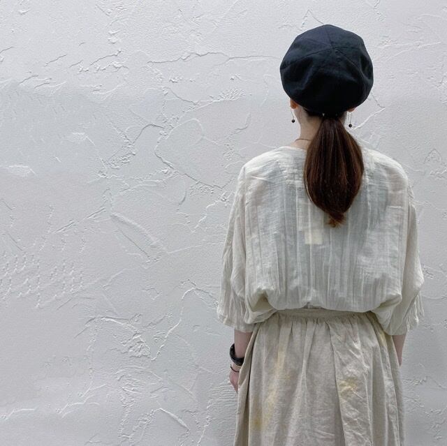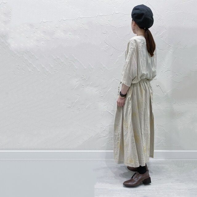 ふんわり柔らかい薄手のガーゼで、生成りのナチュラルな色を使用し、製品でべんがら染めを施しました。