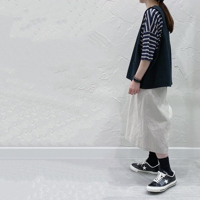 インナーアイテムは半袖から秋にかけ長袖やワンピース・シャツとコーディネートの幅を広げていける魅力の1枚です。