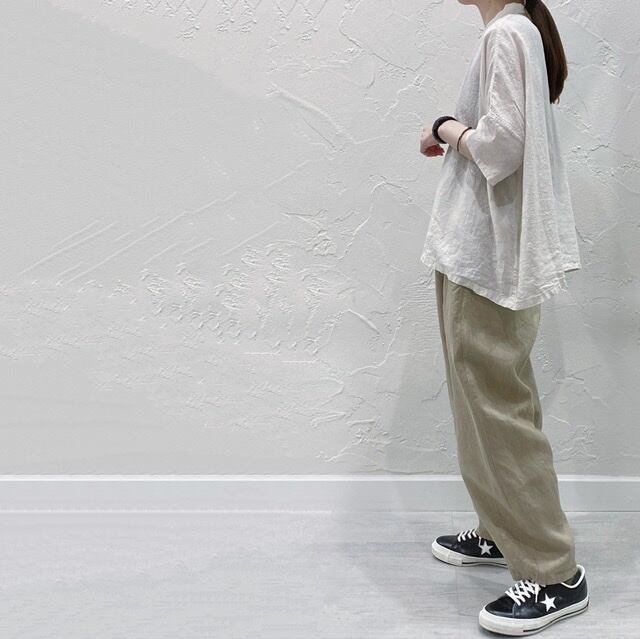 ゆったりとしていながらも、着用するたびにリネン特有の落ち感がうまれます。