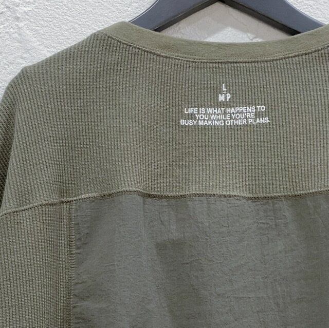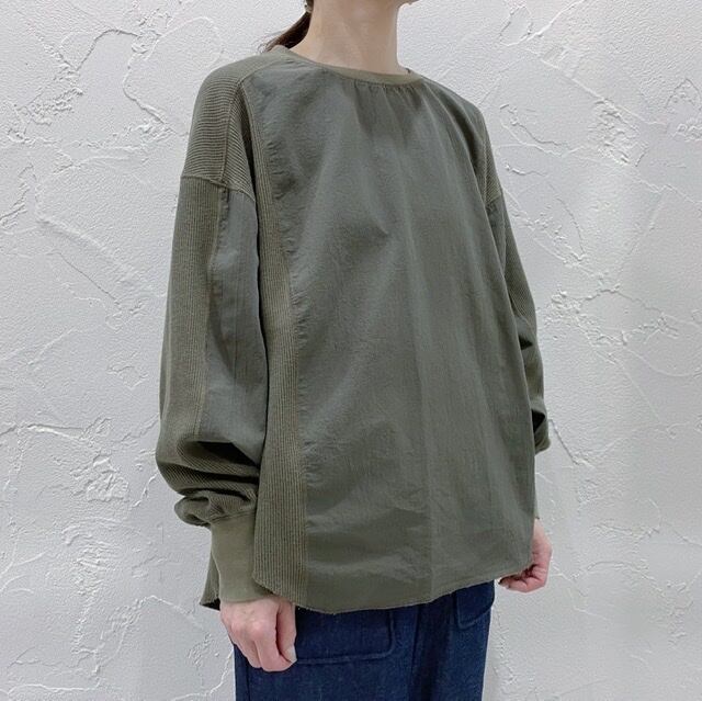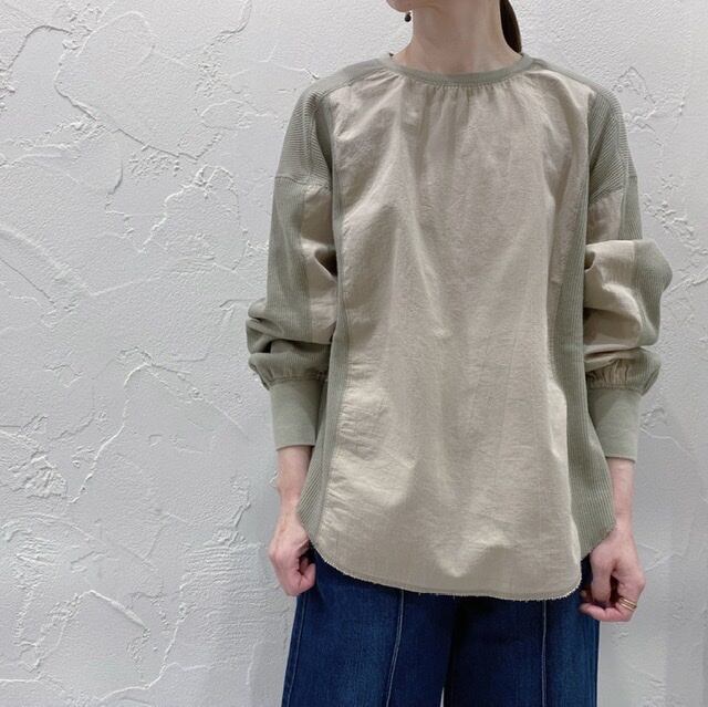 身頃部分は布帛を使い、袖と身頃サイドはカット素材を使用。