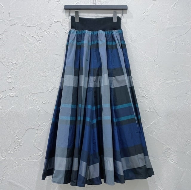 大きめチェック柄のPASSIONE のロングフレアスカート。