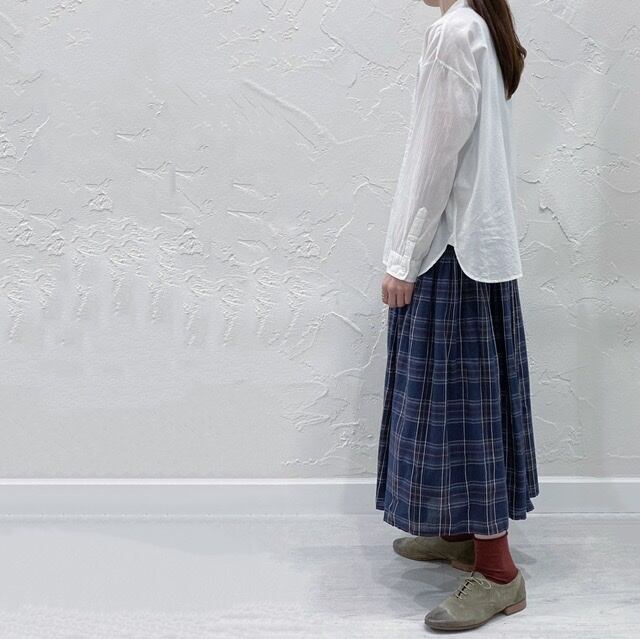 チェック柄に織り立てたシアサッカー生地は、薄手で少し透け感があり、優しい雰囲気に仕上がっています。