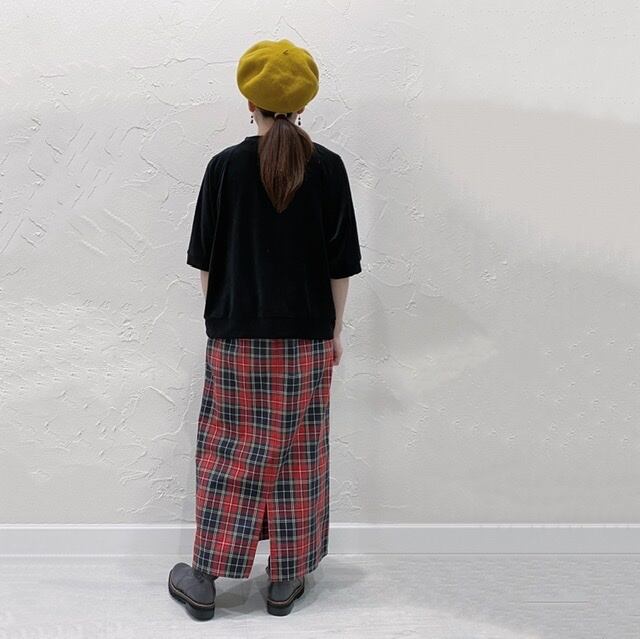 ウエストの背中部分に着脱しやすいジップが付いています。薄手の生地なため、晩夏から早く秋の装いを取り入れることのできるスカートです。