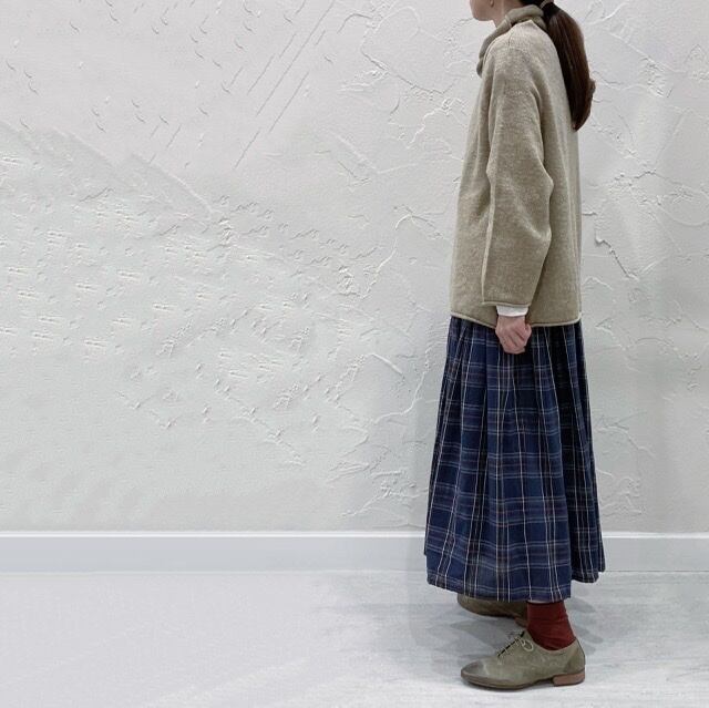 コットンのような薄手の生地感とウールの温かみがミックスされたほっこりとした雰囲気が魅力です。