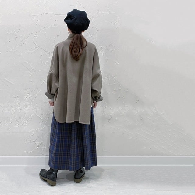 ゆったりしたサイズ感で、インナーにニットまで重ねられます。