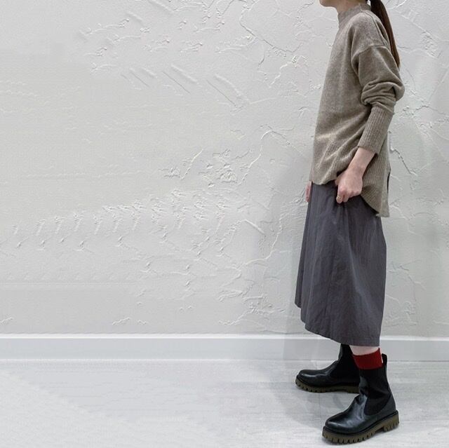 体のラインを拾わないワイドシルエットで、、ボトルネック部分もゆったりとしています。