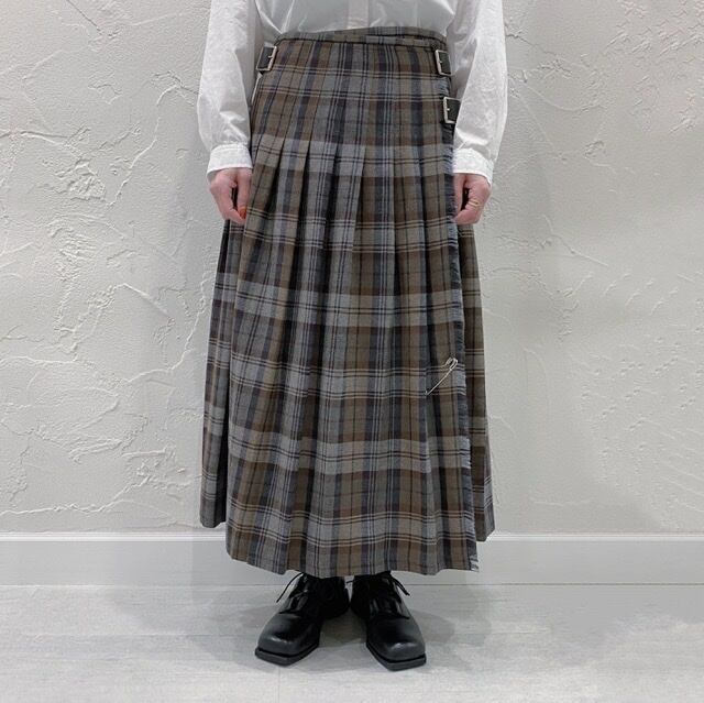 付属のピンでアレンジも楽しめる点も魅力的。飽きの来ないデザインで長く愛用して頂けるスカートです。