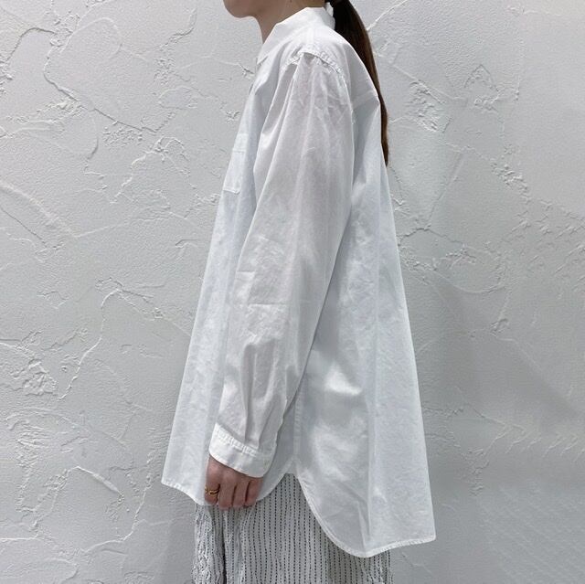 毎シーズン人気のPASSIONE 衿後ろベルト シャツブラウスです。 一見シンプルなデザインのブラウスに見えますが、衿の後ろにベルトのデザインがポイント。 一枚で着ても良いですが、ベストやニットの重ね着にも重宝するブラウスです。 カラー ホワイトのみ 素材 綿100% サイズ バスト110cm 着丈(前)73cm (後)78cm (モデル身長 160cm) 中国製