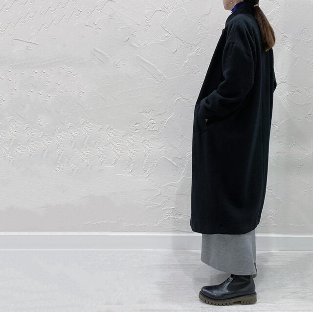 mizuiro indで長く愛されるスッキリとしたシルエットと非常に軽いウールモッサの暖かさが特長のスタンドカラーロングコートです。