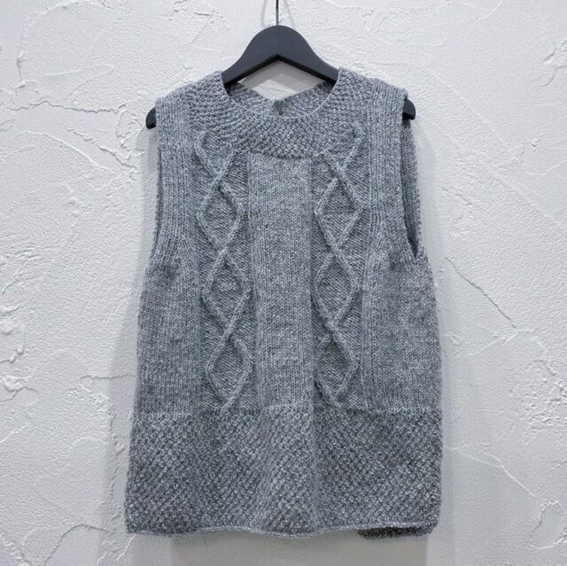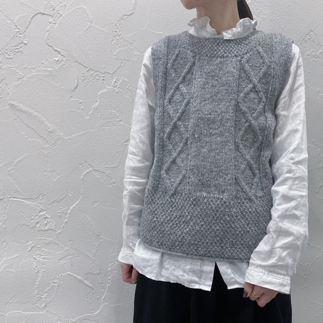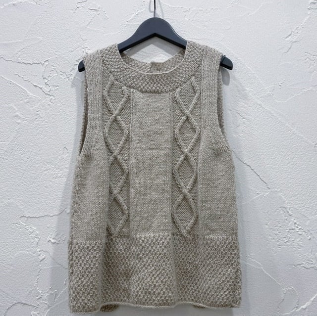 毎年人気のTANGのハンドニットベストです。 シーズン長く着れてスタッフにも人気があります。 後ろの開きがポイントでお洒落をさり気なく主張しています。 シャツやタートルとの組合せはもちろん、ワンピースとのコーディネートもお勧めです。 カラー キナリ、ベージュ、グレー 素材 ウール100% ドライクリーニング サイズ 着丈58cm 身幅92cm (モデル身長 160cm) 中国製