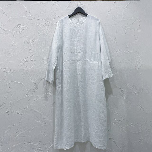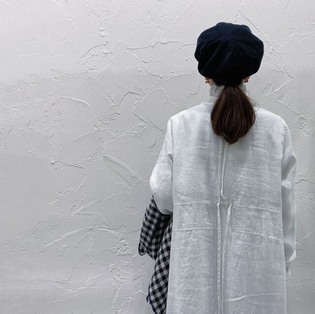 リネン100%の生地をもみほぐした、柔らかくややシワ感のあるナチュラルな表情で、とろみのある生地です。