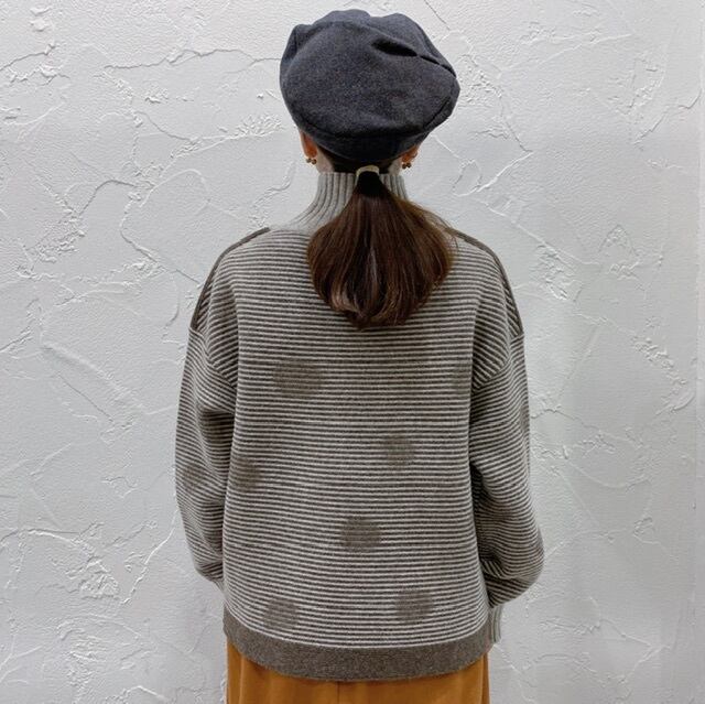 ボーダーは凹凸がある編み地で、方向によってドットが濃くなったり薄くなったり見える不思議な編み方をしています。