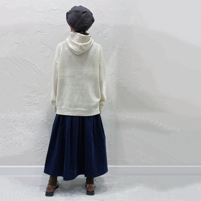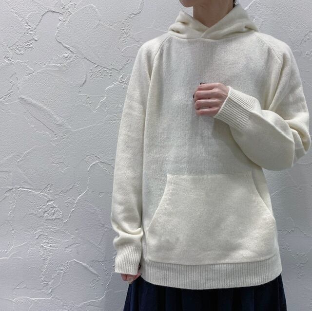 柔らかで温かみがあり、フードとフロントのポケットがカジュアルな印象です。