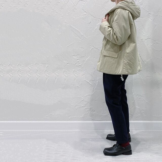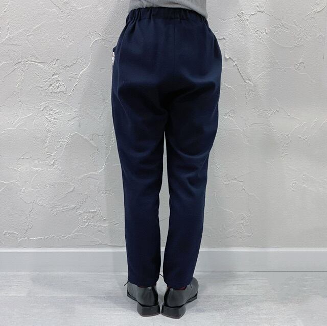 ポケットを利用したタックで腿回りに余裕をもたせ、裾に向かったテーパードシルエットは履いた時の印象をスキッリさせます。