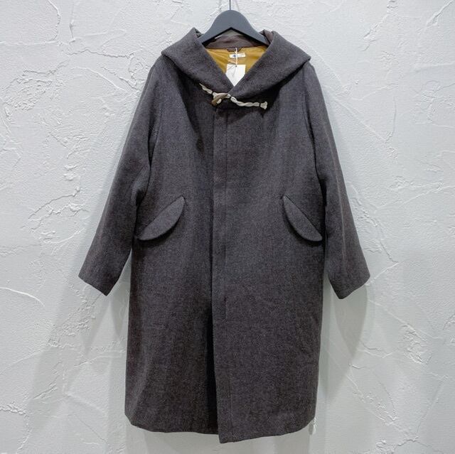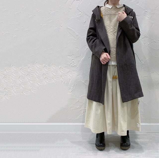 襟元がダッフルのような吊りループ仕様で、カジュアルに着こなせるウールコート。