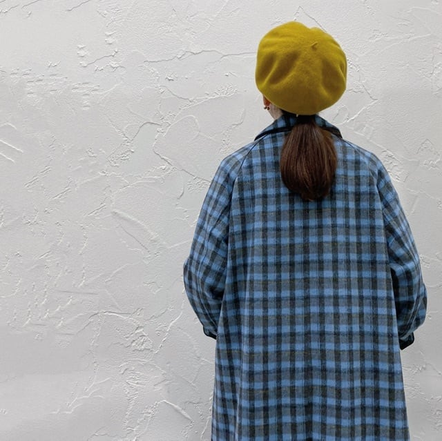 衿端とラグランの切り替え箇所、袖フラップに色を合わせた微光沢感のあるパイピングテープでシャギー素材のウォーム感を引き締めるアクセントとなった1枚です。