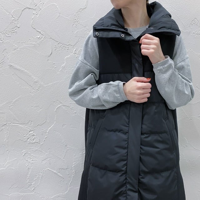 スッキリ見えする異素材コンビのコートで見た目以上に軽くて柔らかいです。