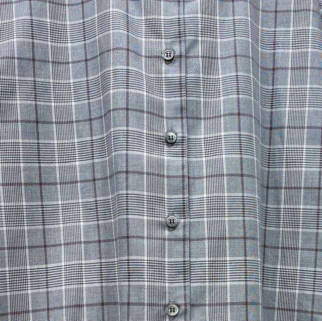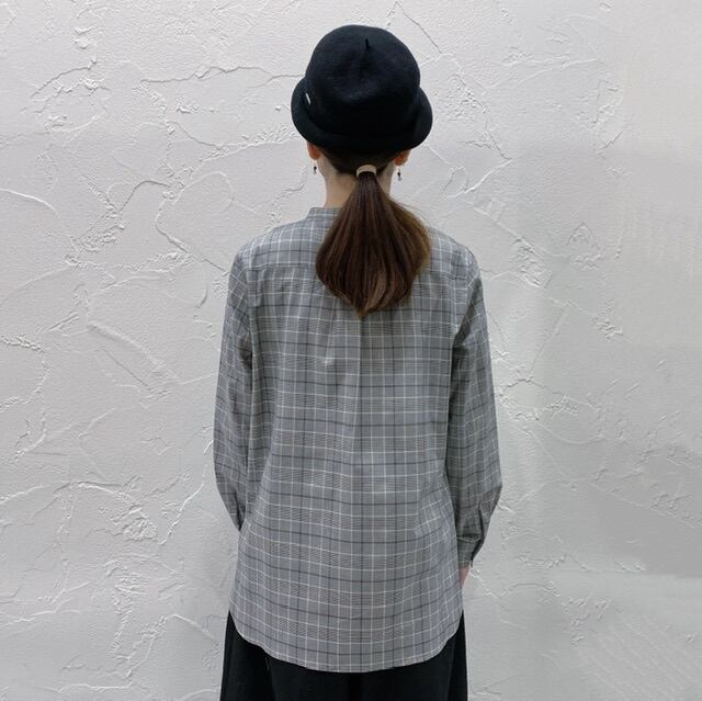 首元はスッキリとしたスタンドカラー、裾は丸みのあるラウンドヘム。