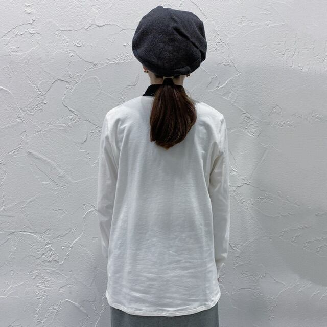 ワンピースやベストの重ね着、ニットやカーディガンのインナー対応としてコーディネートの幅が広く着こなせるプルオーバーです。