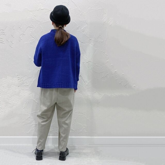 タックを入れボリュームをもたせたテーパードシルエットのパンツです。