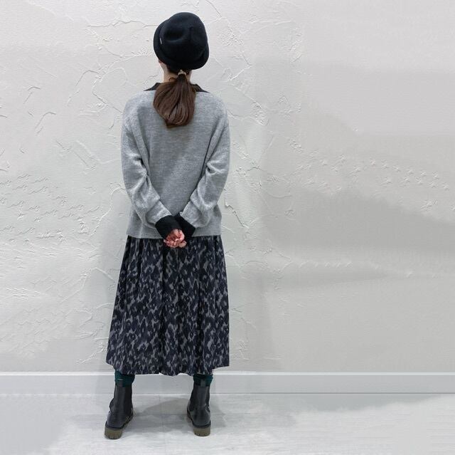トップスはシンプルに合わせて良く、中ゲージのニットコーディネートで暖かな着こなしもお勧めです。