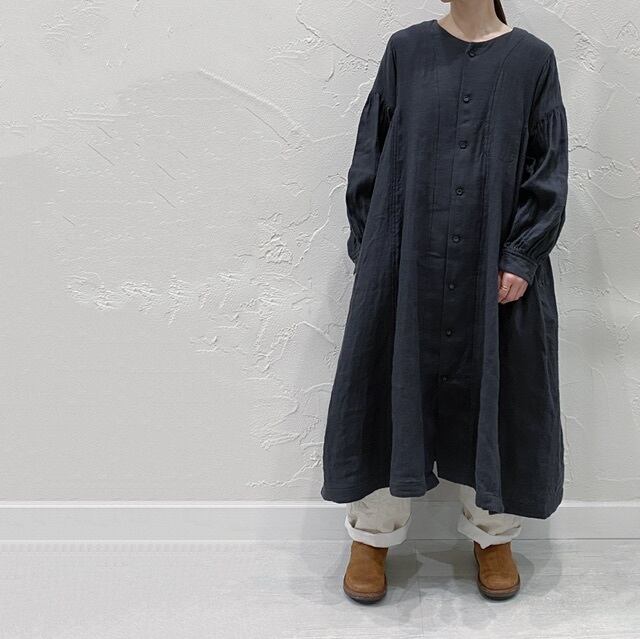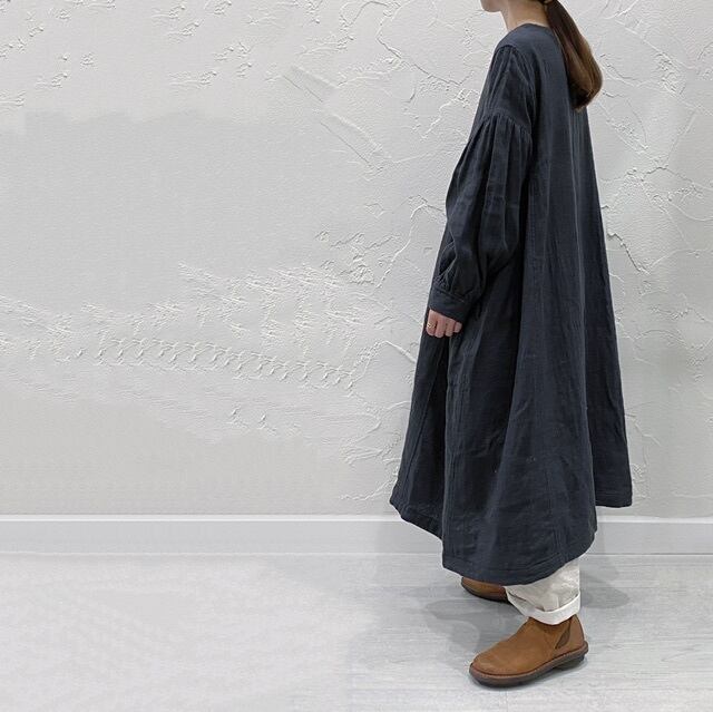 シンプルにワンピースとしても、前を開けて軽いコートとして羽織ったりと様々なコーディネートを楽しめます。