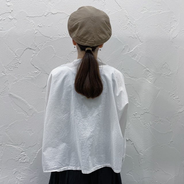 製品洗いをすることでピンタック部分が浮いたような表情を演出しました。