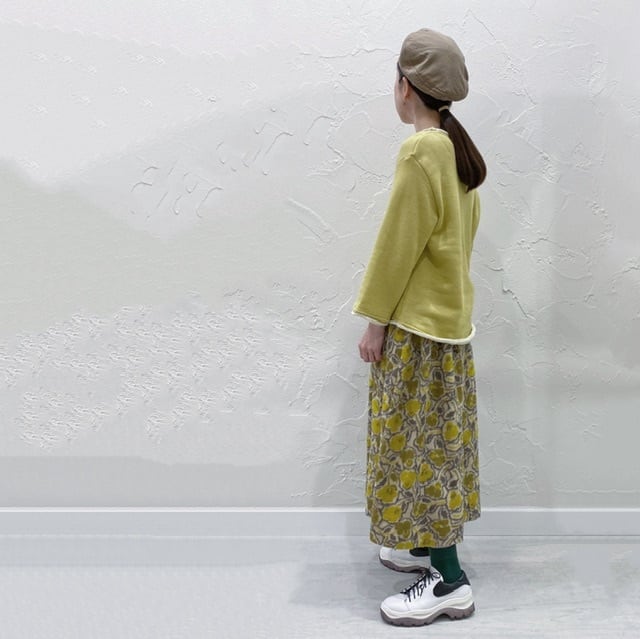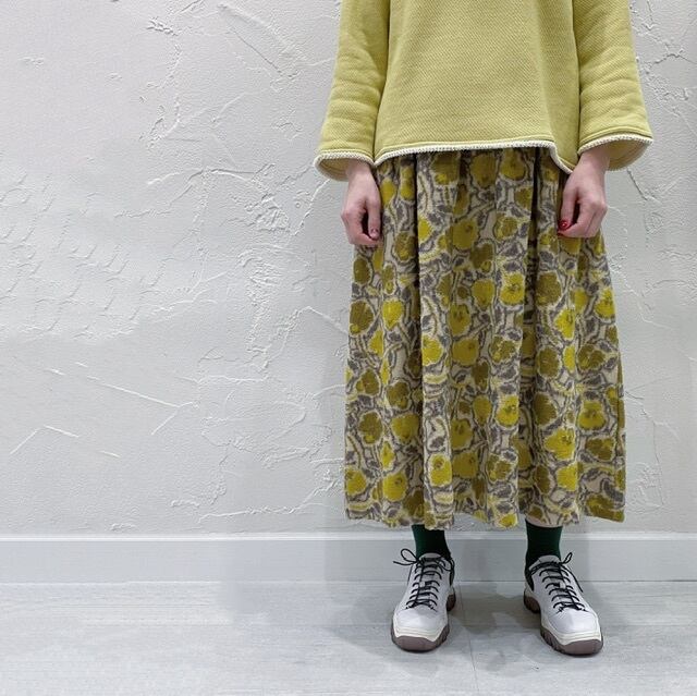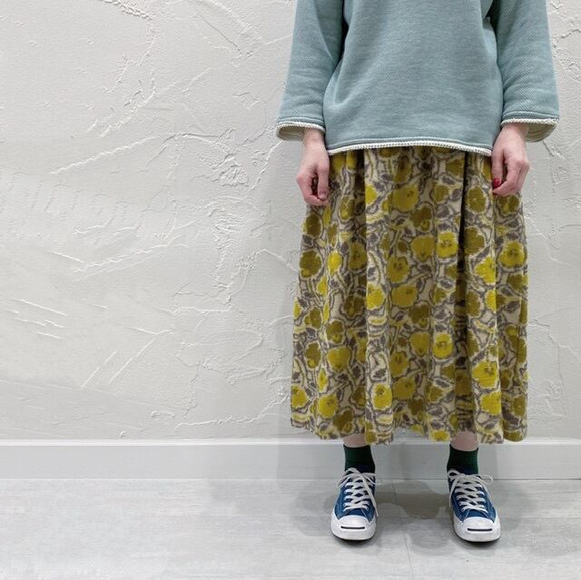 素材はコットンにウール糸で凹凸のある柔らかいパイルジャガード、プリムラ柄生地です。