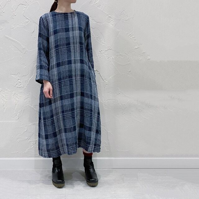 ノーカラーのすっぽりとかぶるタイプのワンピース。