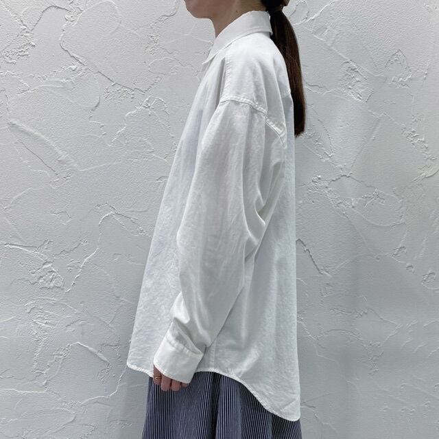 ベーシックなシャツなのでベストなどの重ね着はもちろん、前を開けて羽織物としても使える万能アイテム。