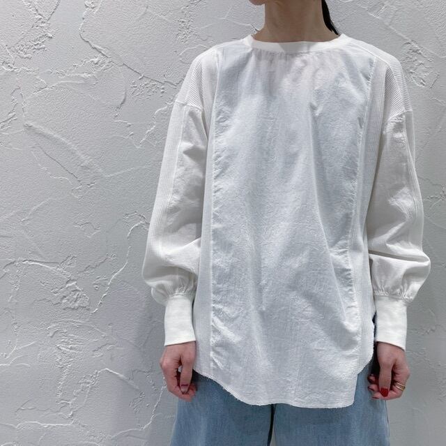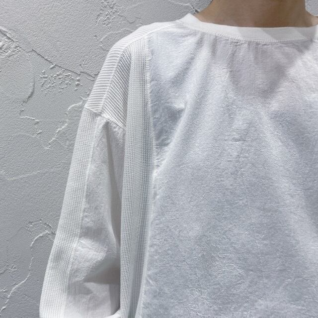 身頃部分は布帛を使い、袖と身頃サイドはカット素材を使用。